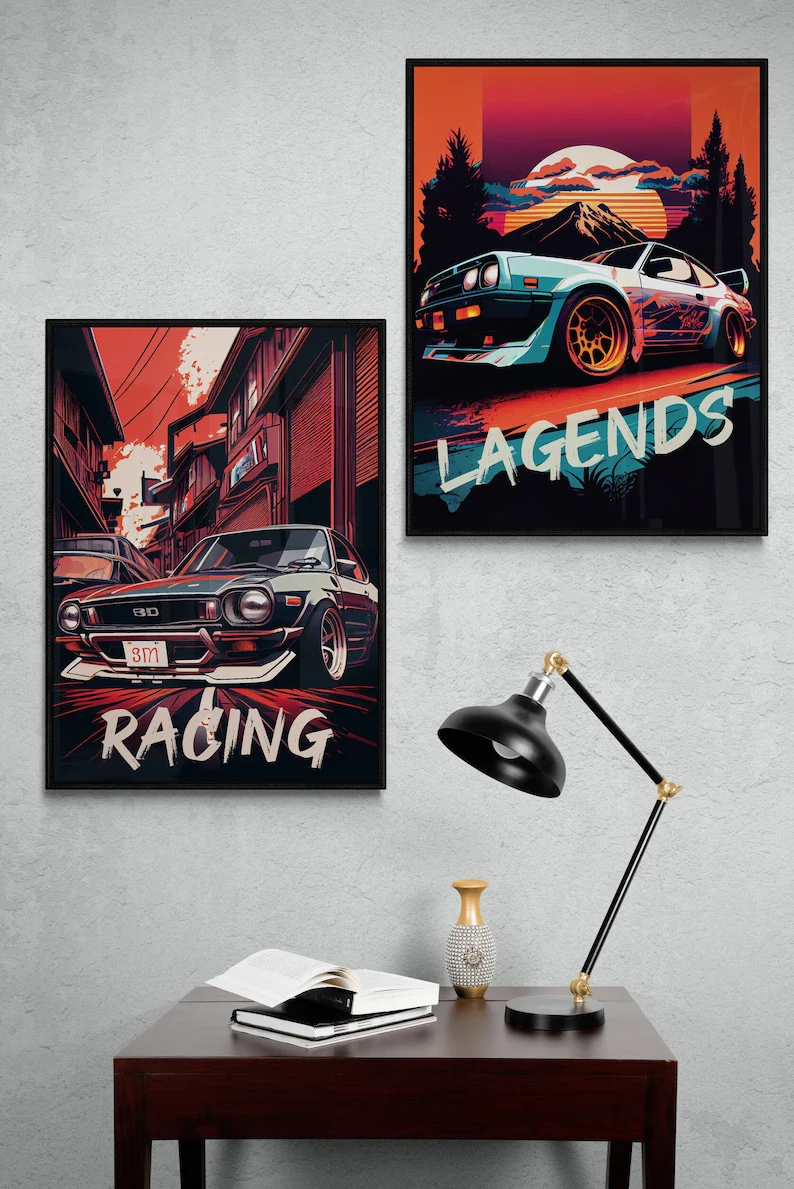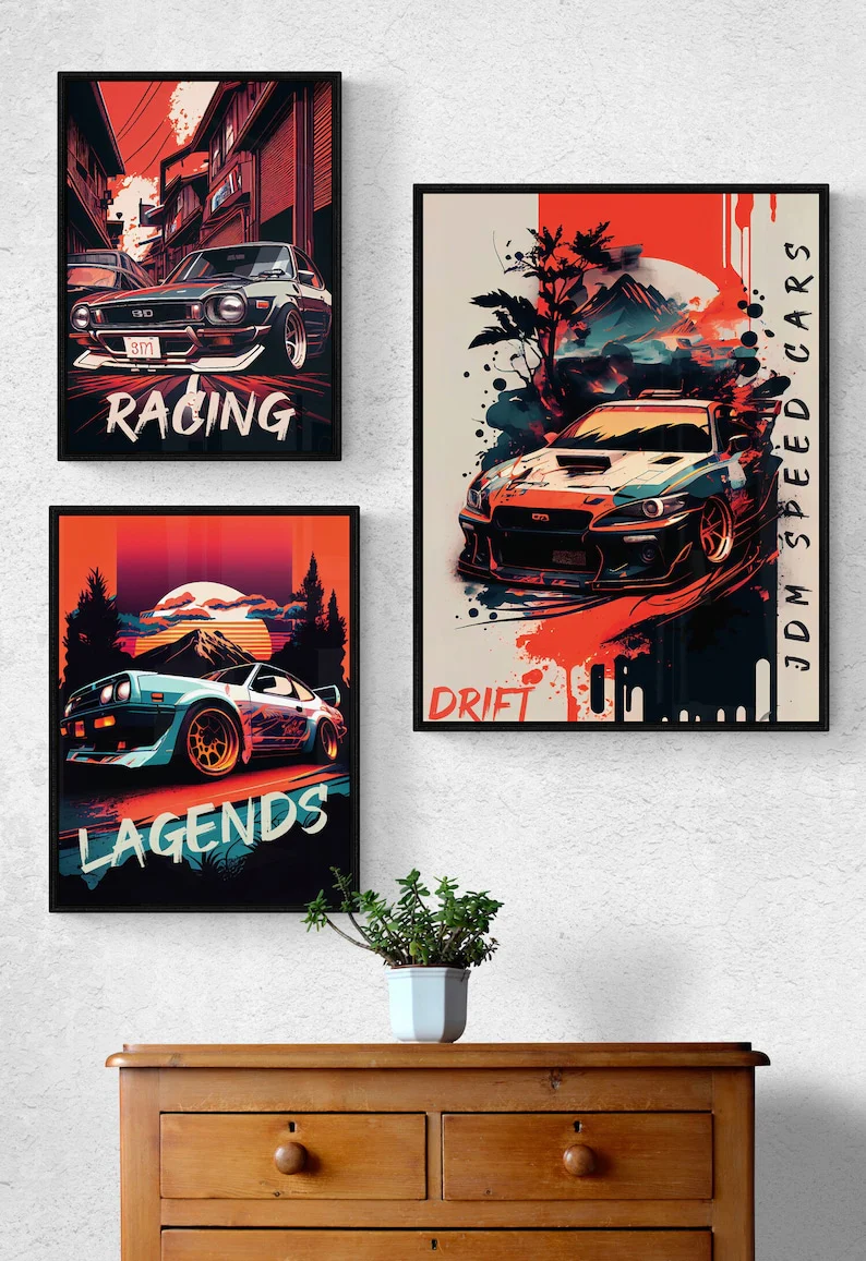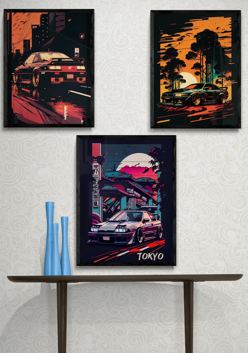 Don’t let your boy’s dreams of Tokyo street racing stay on the sidelines. Order our 9-Piece Tokyo Street Racing JDM Car Poster Set today and create a bedroom that embodies the spirit of speed, excitement, and automotive passion.