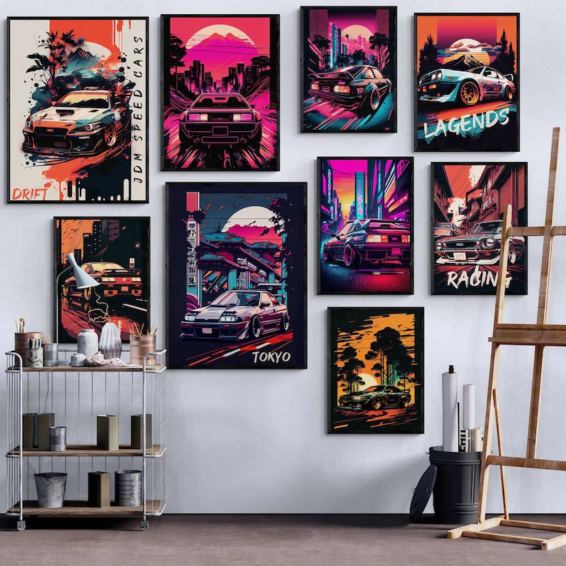 9-Piece Tokyo Street Racing JDM Car Poster Set: Transform Your Boy’s Bedroom into a Revving Paradise