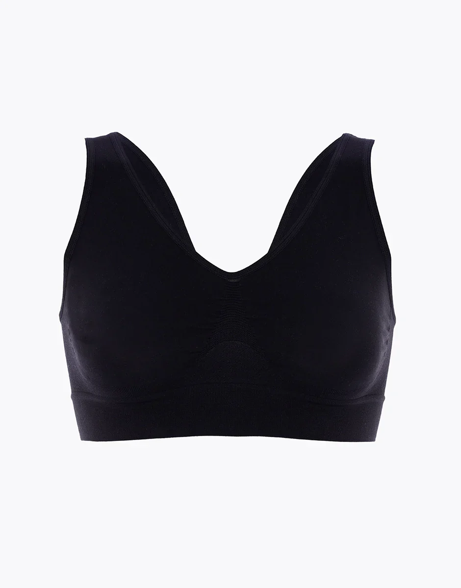 Active Comfort wireless brassière sports bra made from breathable fabric and designed to provide support without constriction. This seamless top is therefore ideal for low-impact sports activities, allowing full freedom of movement and comfort, in harmony with the body during exercise. Seamless and wire-free, it is so comfortable that it is also ideal for those seeking comfort and light support during moments of relaxation and sleep.