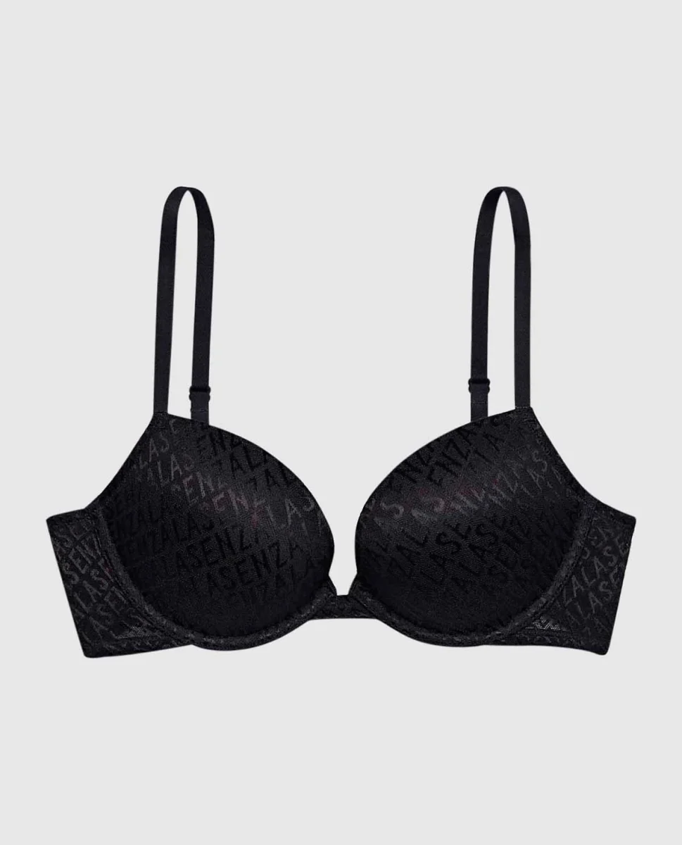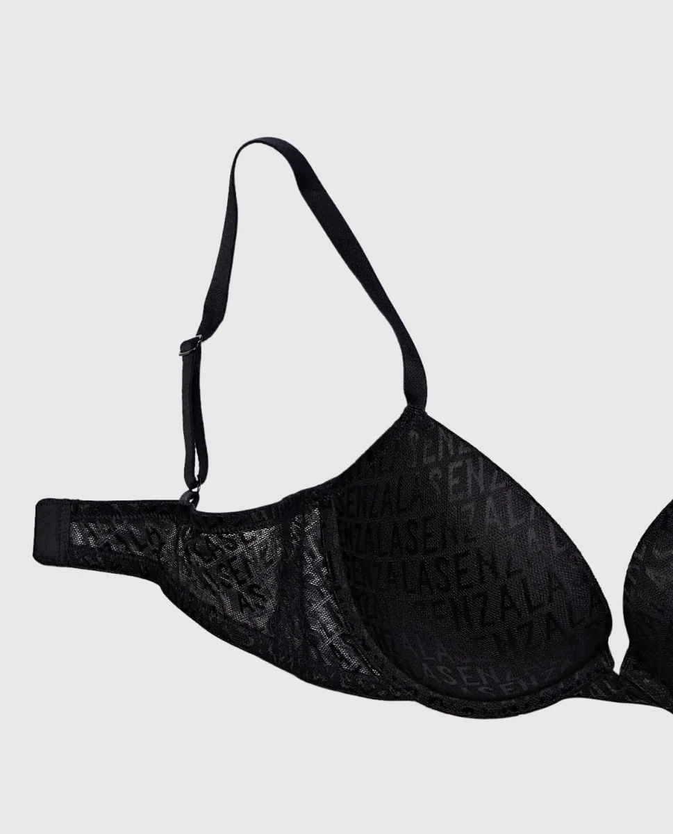 A must-have push up bra featuring our new luxe logo mesh, this will be your favourite bra! Integrated push up cups Allover logo mesh cups Underwire for support Adjustable bra straps Back closure Imported polyamide, elastane