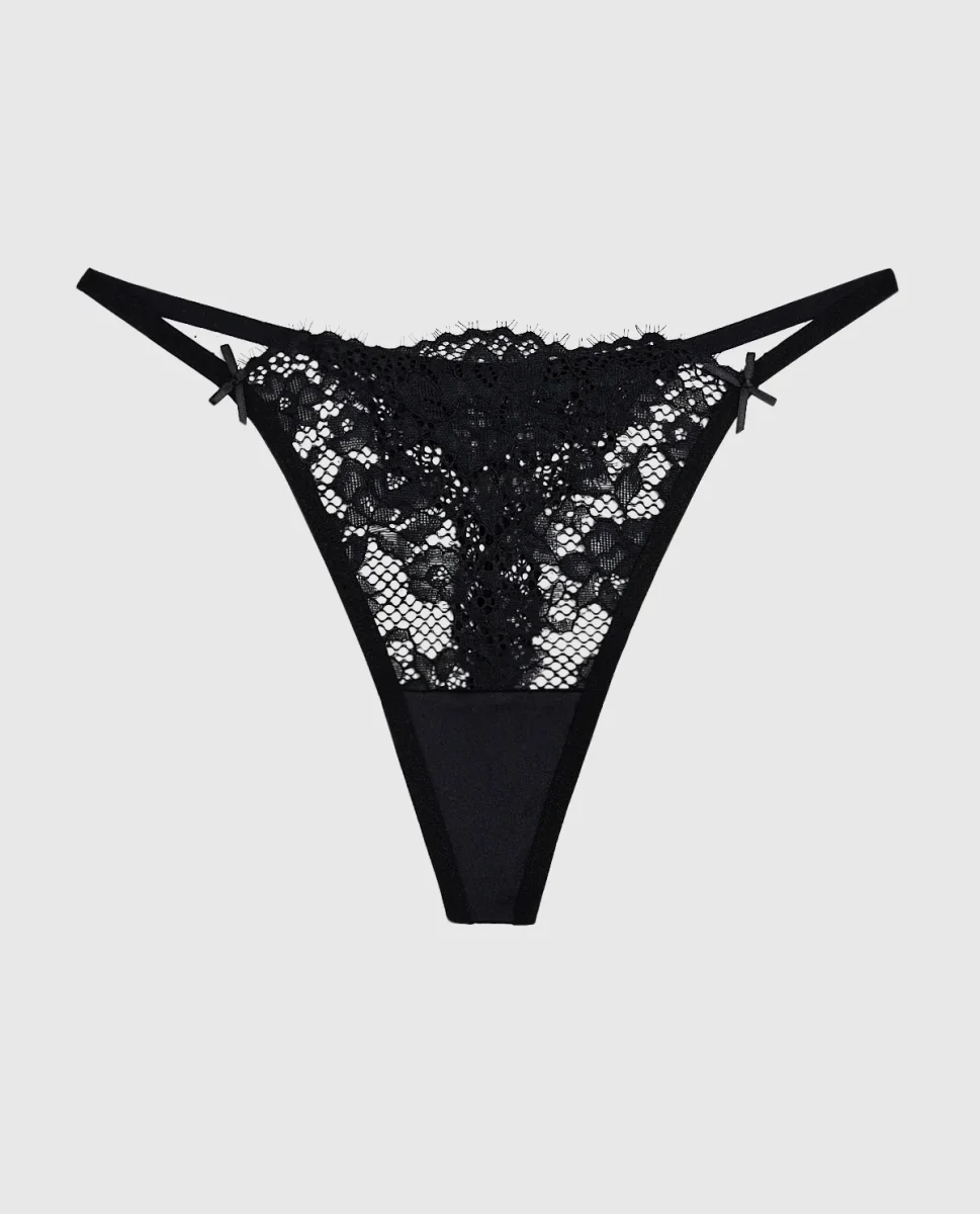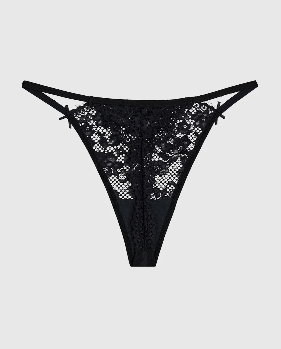 Achieve an alluring look with this Allover Lace High Leg G-String Panty in Black designed for an effortlessly feminine feel. Made with imported polyamide and elastane, fits true to size.