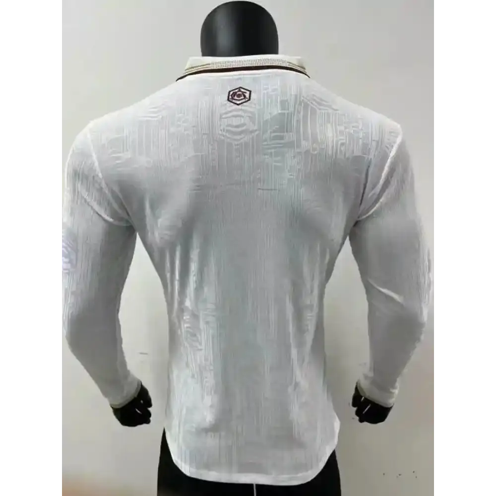 Ce maillot adopte une teinte crème rehaussée de détails bleu marine, clin d’œil à l’histoire et à l’élégance du club. Son tissu hautement respirant assure une excellente évacuation de la transpiration pour un confort maximal sur la durée, même avec les manches longues.