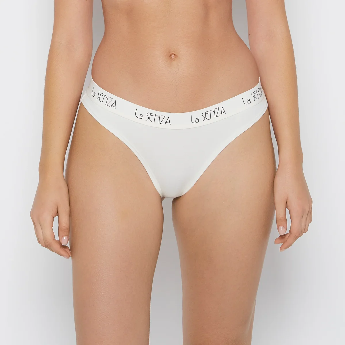 Refresh your essentials with the Thong Panty with Art Deco Logo in Egret. Part of the essentials cotton collection, crafted in premium cotton. A perfect balance of simplicity and comfort.