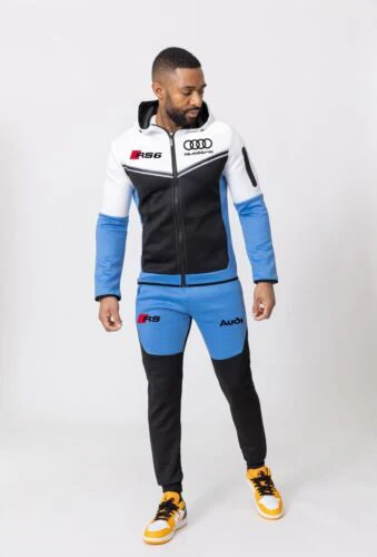 A: The hoodie features an intricate embroidered Audi RS6 logo and subtle branding, adding a touch of exclusivity and reflecting the brand’s dedication to detail.