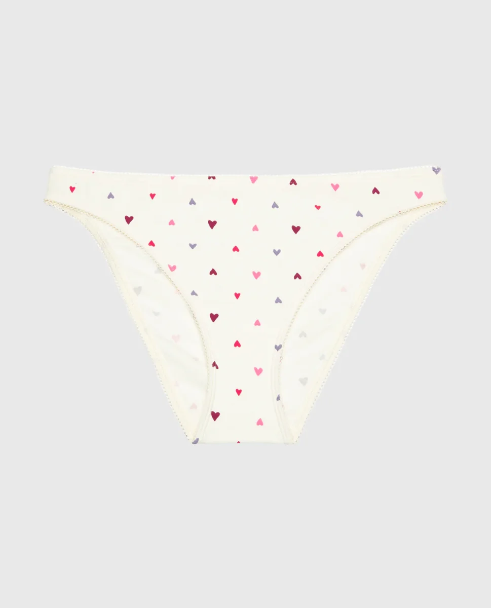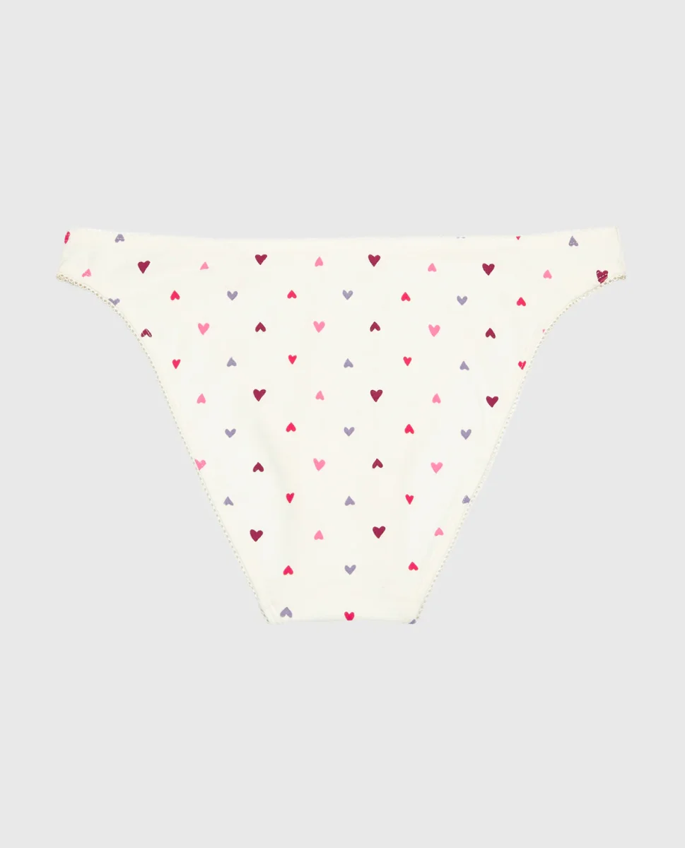 Bikini Cotton Panty and Picot Trim in Tossed Heart