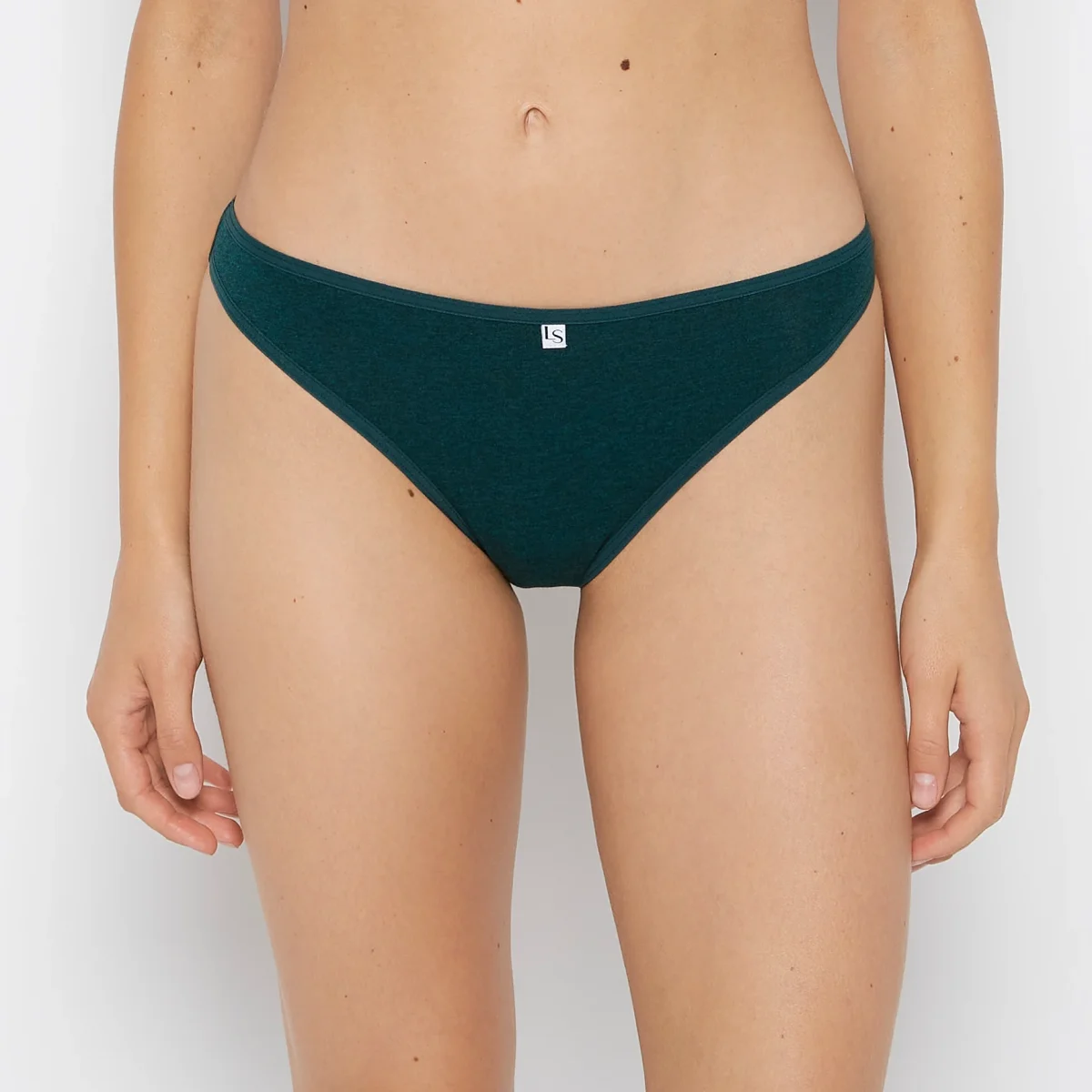The Bikini Panty in Emerald Green Heather brings understated style and comfort together. Part of the essentials cotton collection, crafted in premium cotton. A timeless addition to your lingerie lineup.