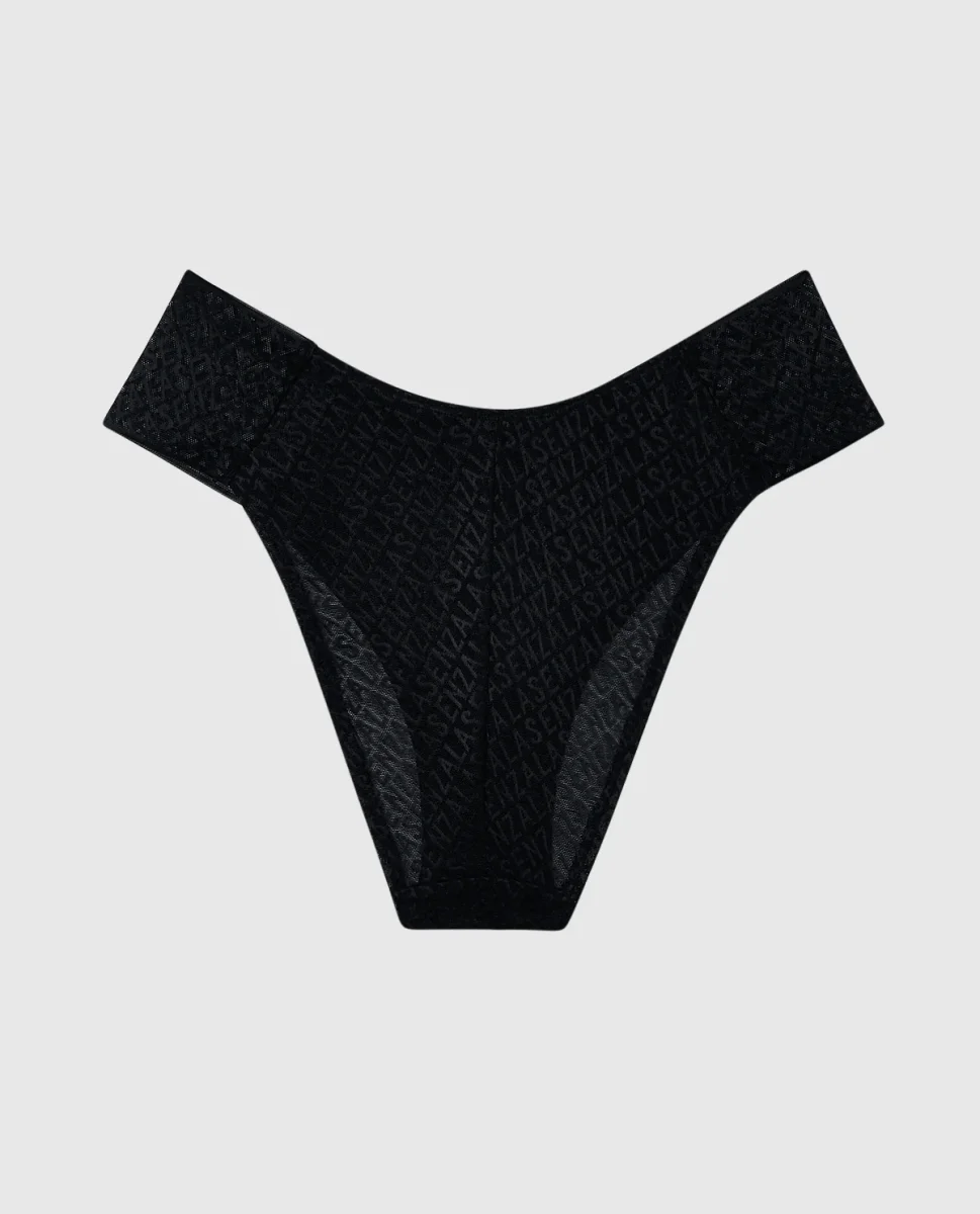 This bikini panty features a scoop waistband with our allover logo mesh and classic coverage. Imported polyamide, elastane.
