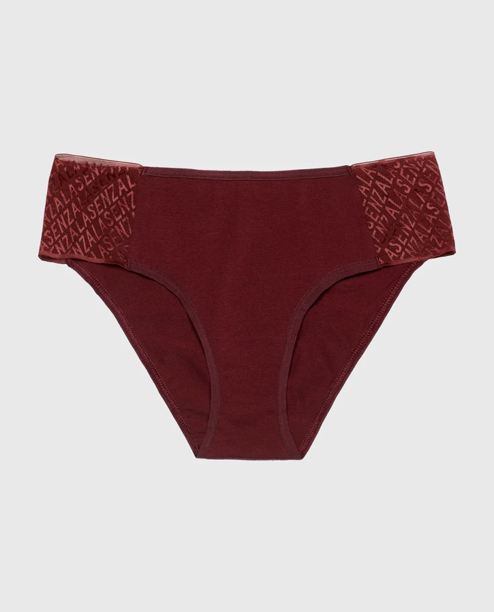 Art Deco Logo Hipster Panty in Fuchsia Red Heather