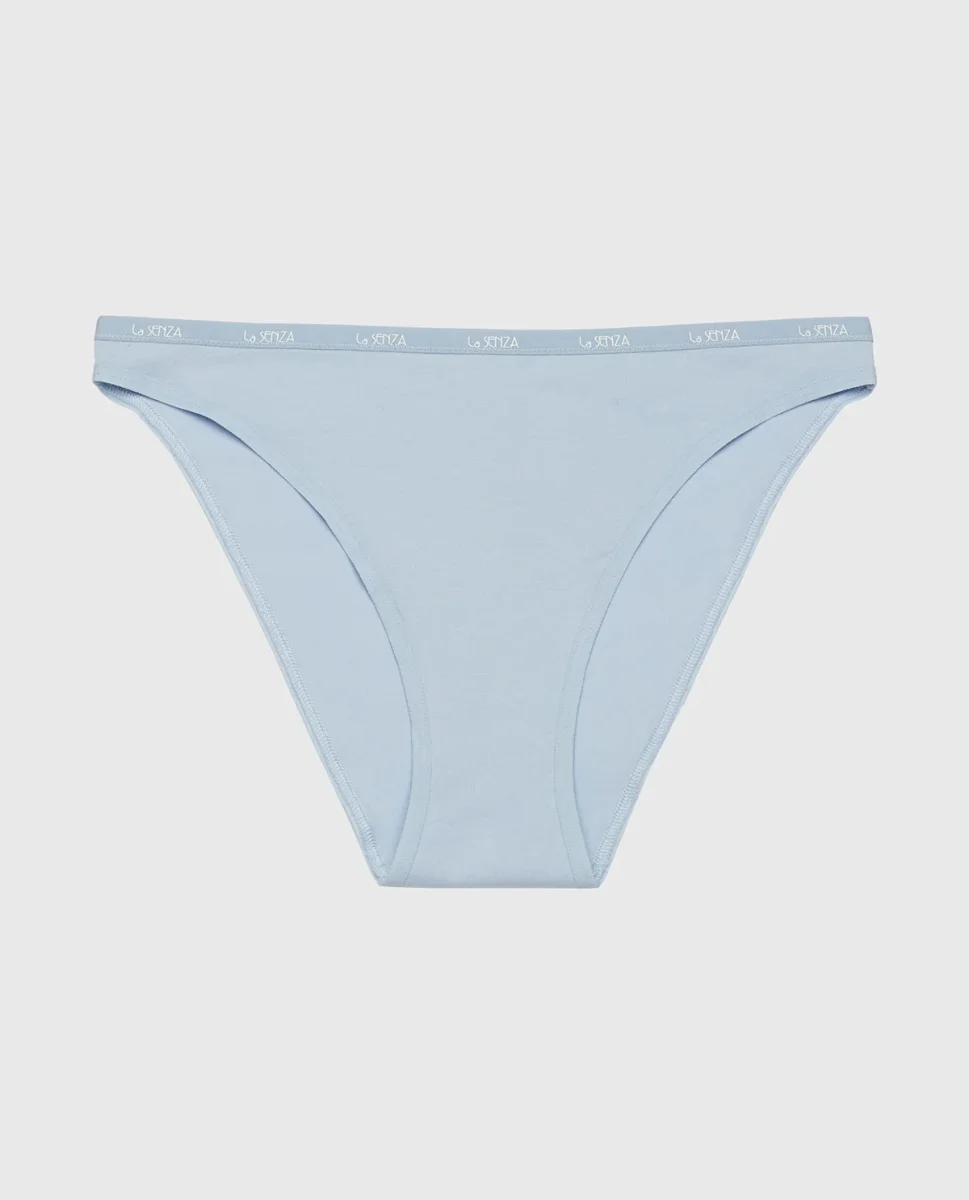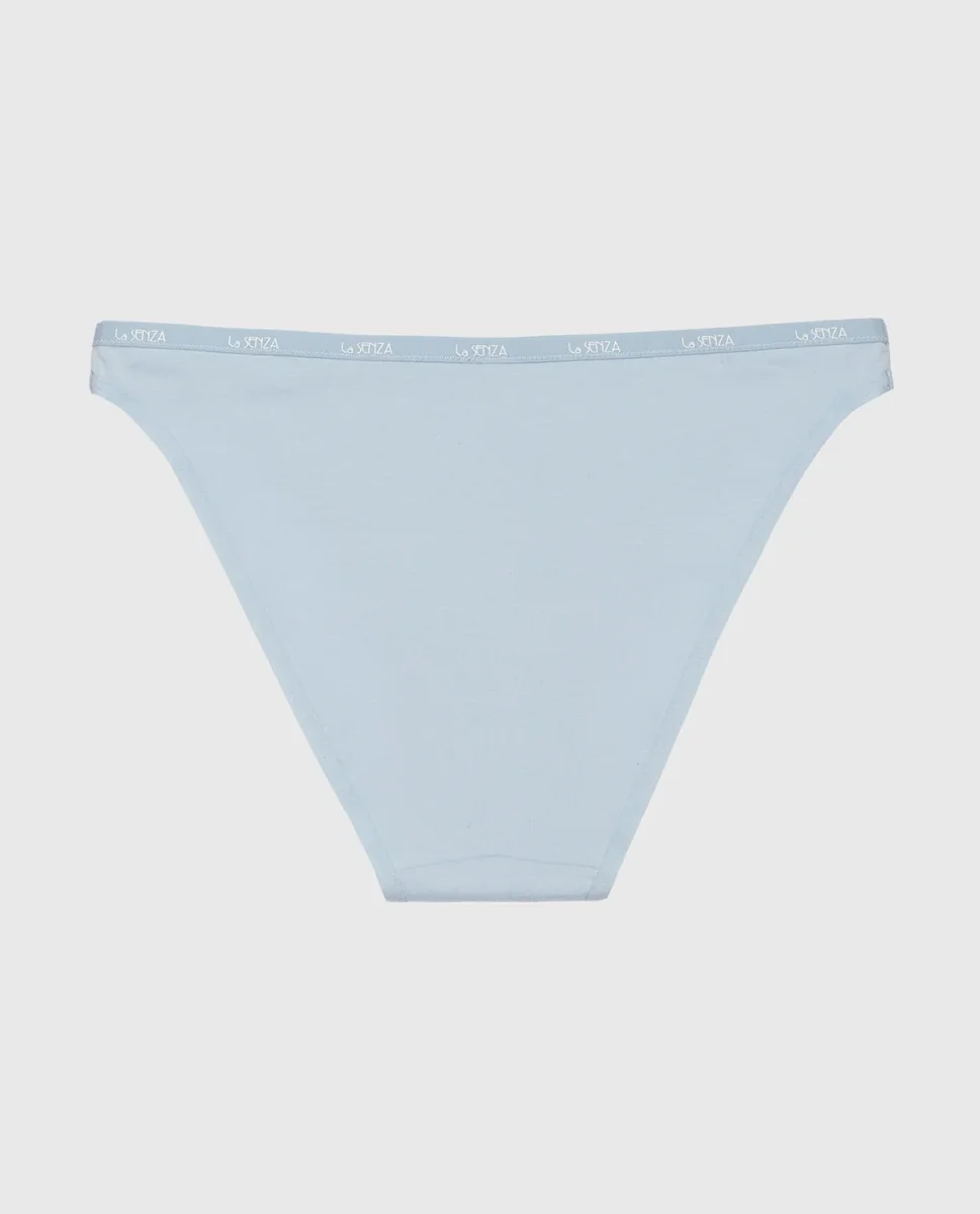 A bold take on minimalism—this Subdued Blue Bikini Panty with Logo Trim features soft stretch fabric and signature logo detailing for an effortlessly cool look.