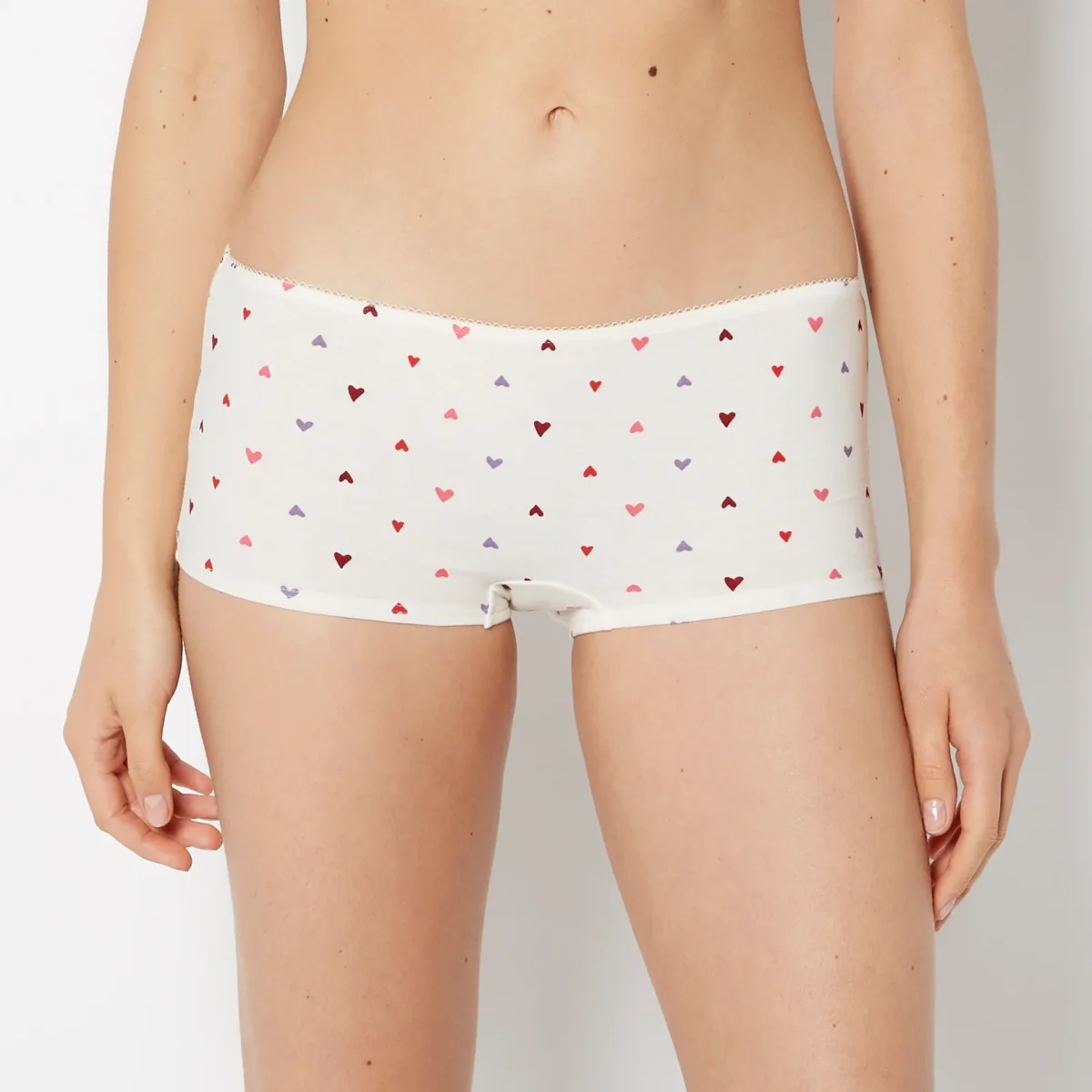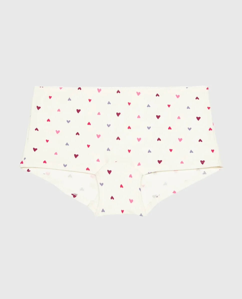 Boyshort Cotton Panty and Picot Trim in Tossed Heart