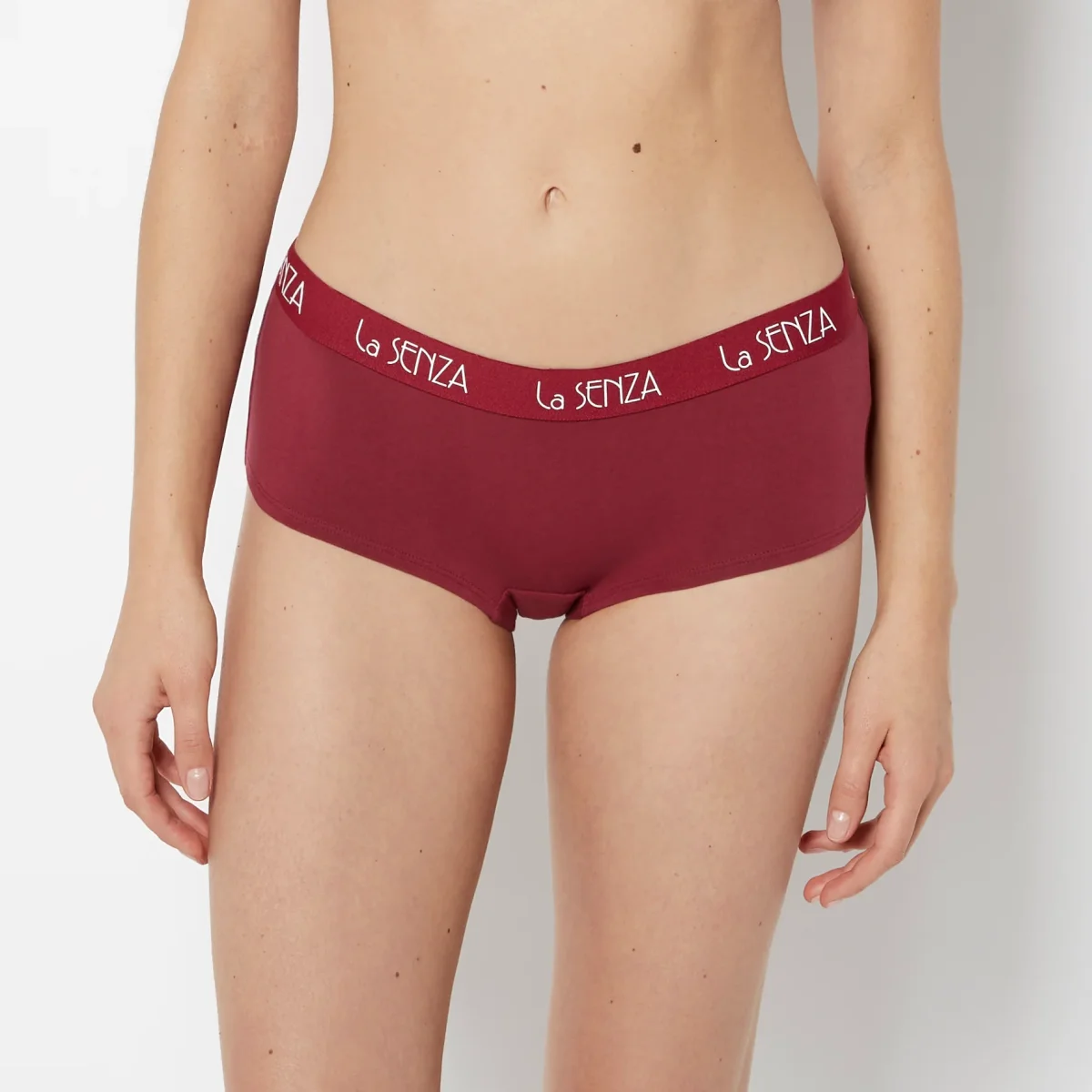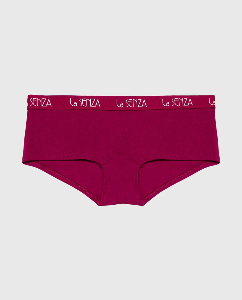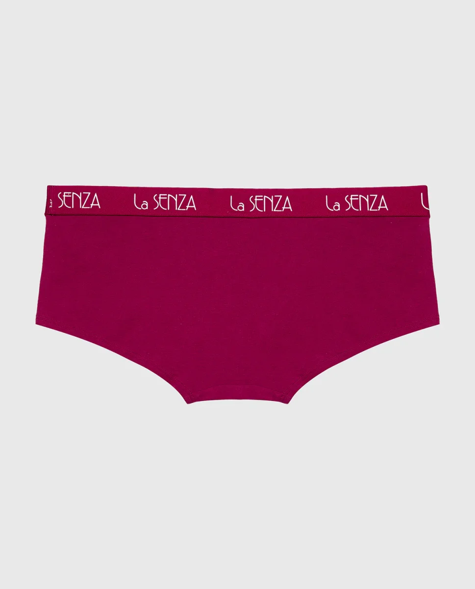 Boyshort Cotton Panty with Art Deco Logo Band in Plum Rose