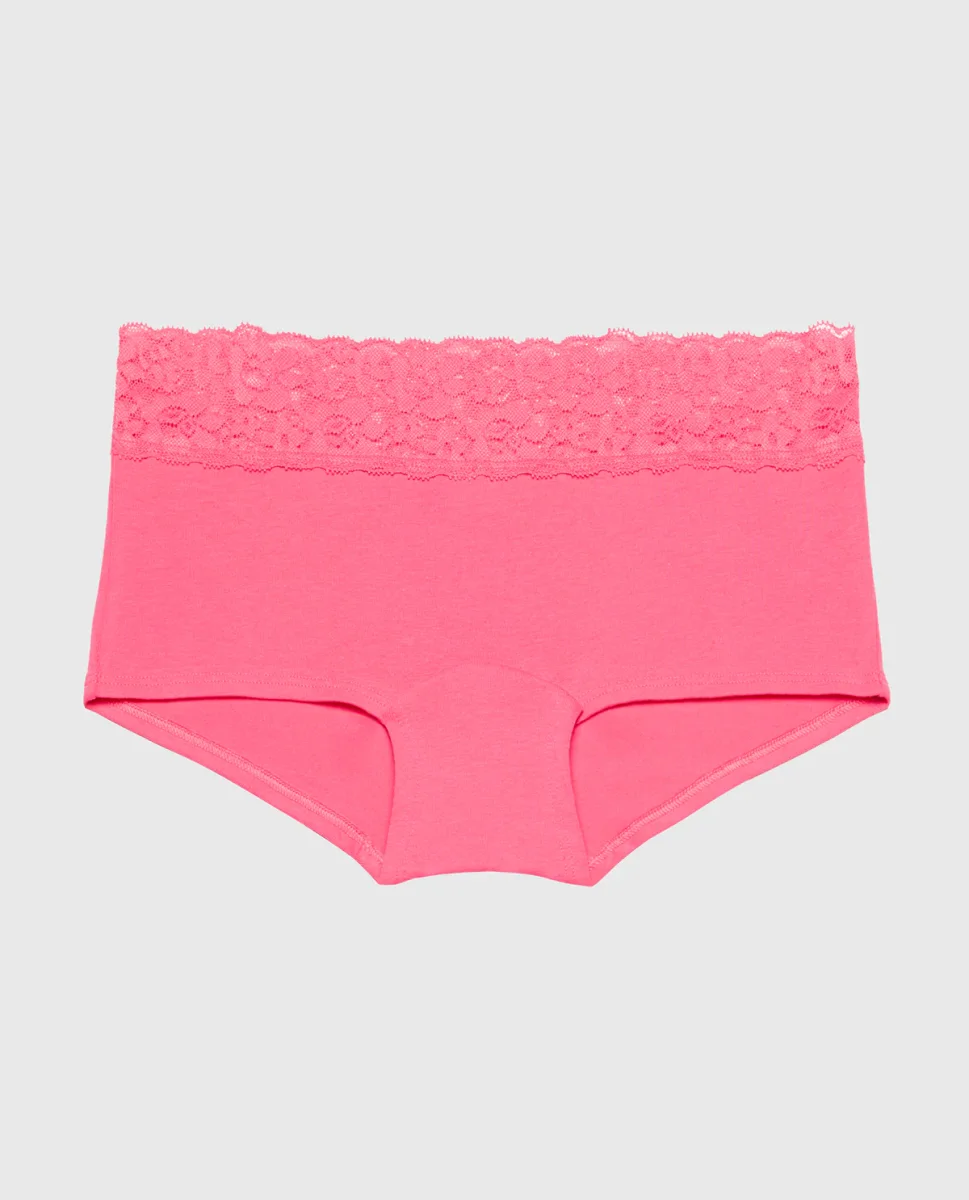 Boyshort Cotton Panty With Lace Trim in Hot Pink