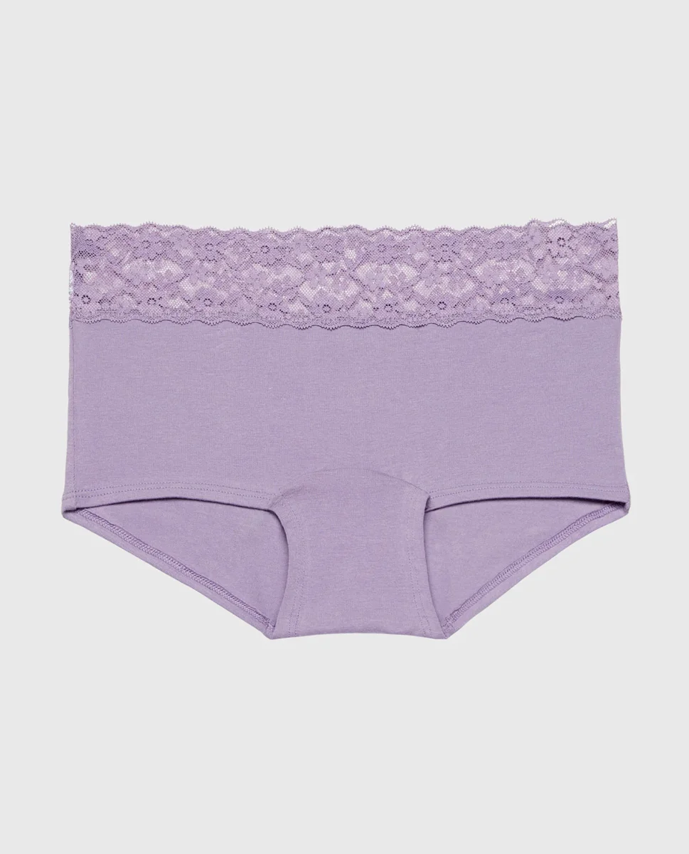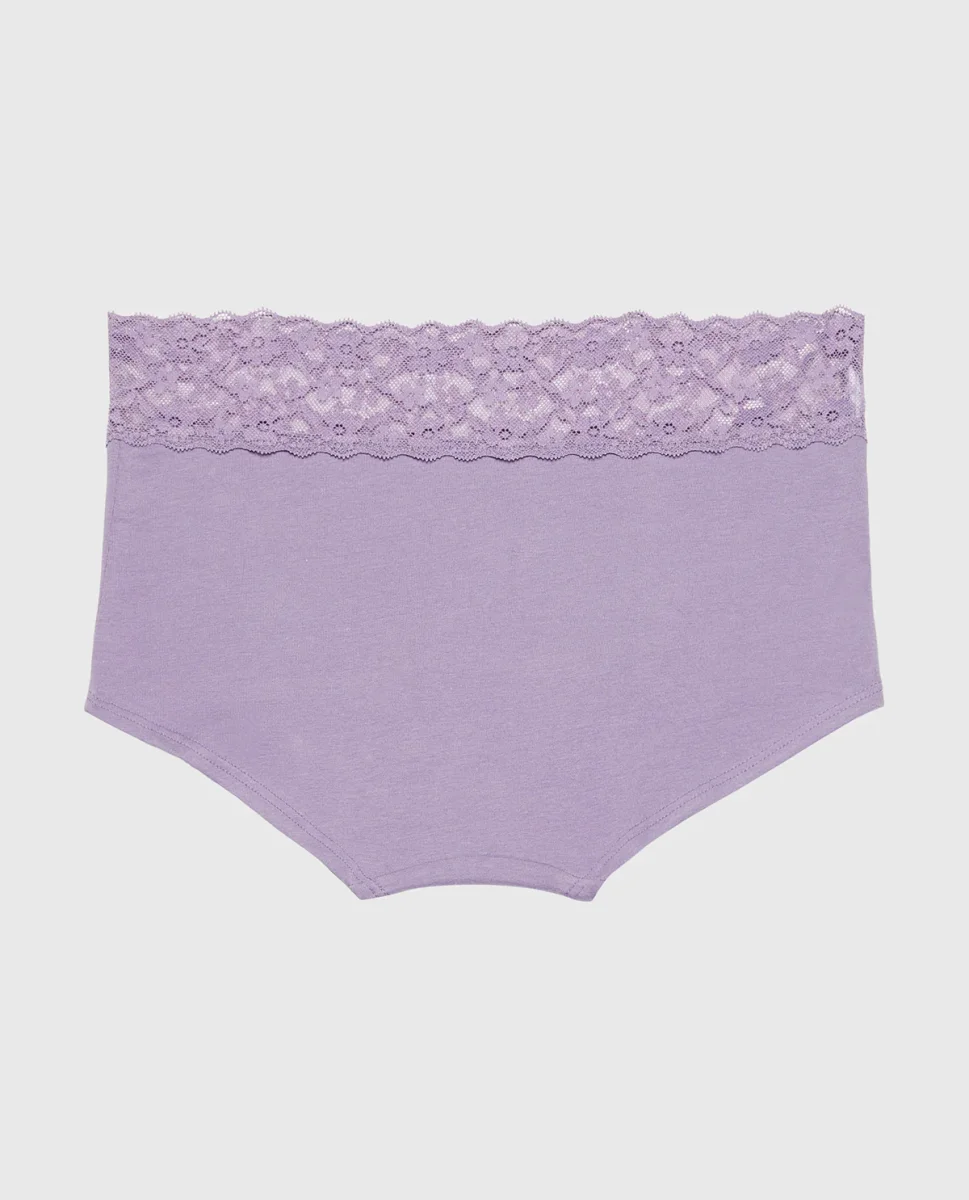 Boyshort Cotton Panty With Lace Trim in Purple Haze