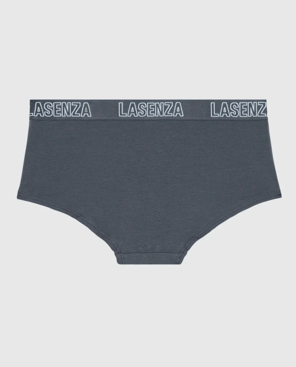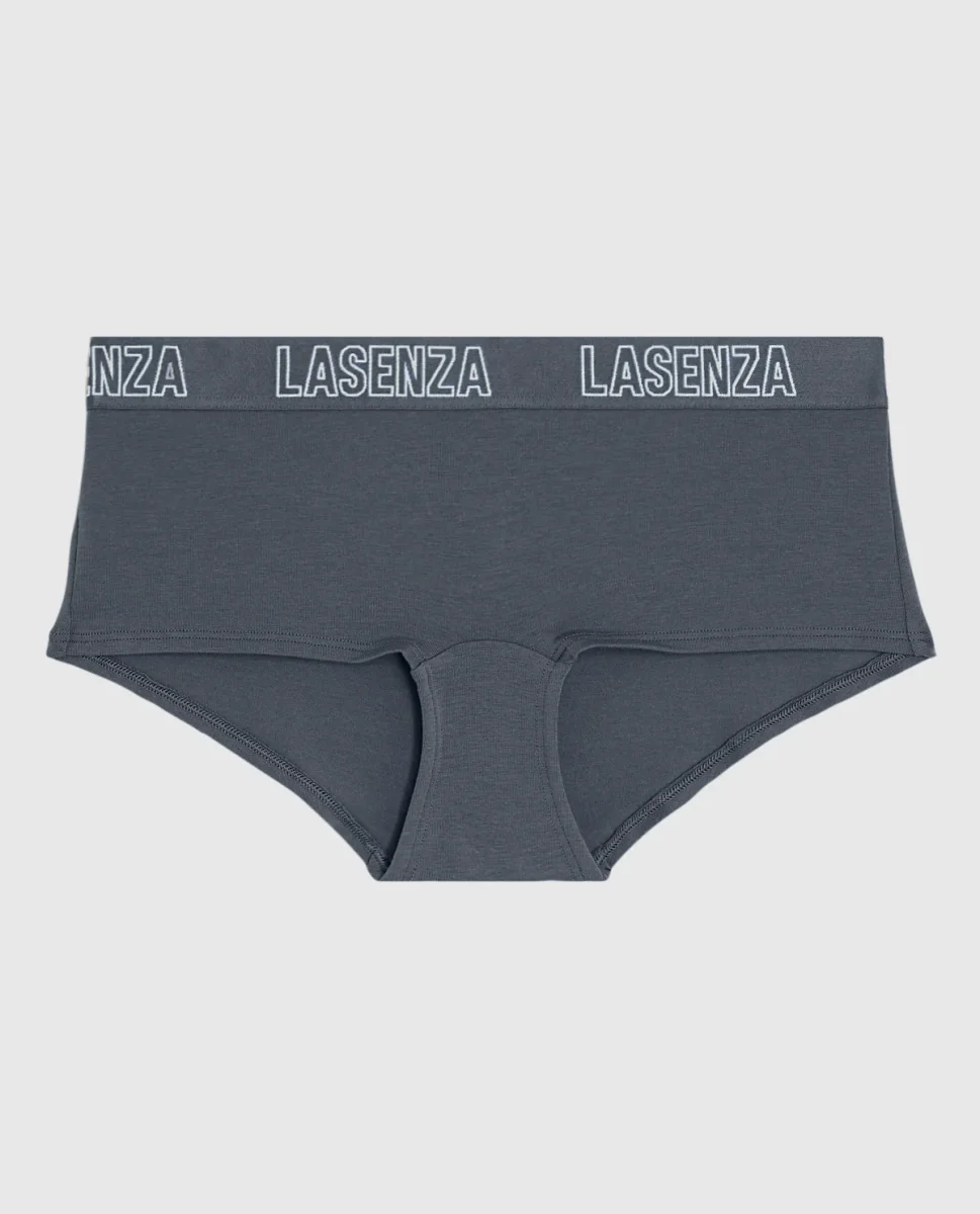 Comfortable, soft, and perfect for everyday. This Stormy Weather Boyshort Logo Panty features our signature logo and is made with breathable cotton. Fits true to size.