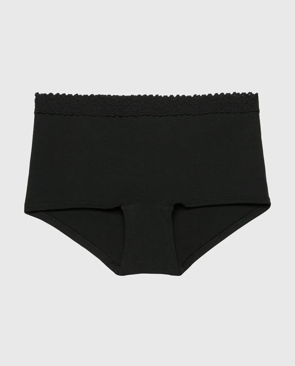 The Boyshort Pantie with Cozy Trim in Tuxedo Black brings understated style and comfort together. Part of the essentials cotton collection, crafted in premium cotton. A timeless addition to your lingerie lineup.