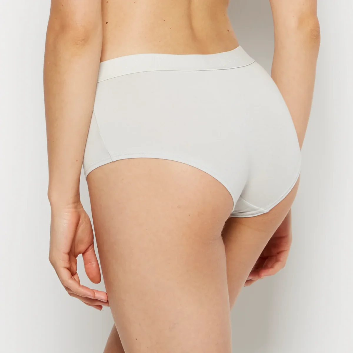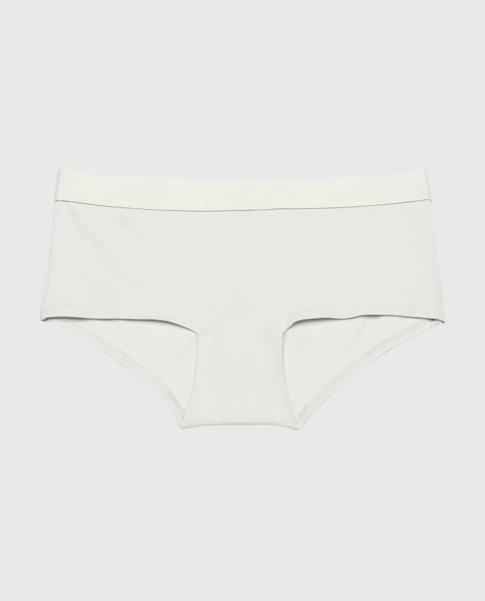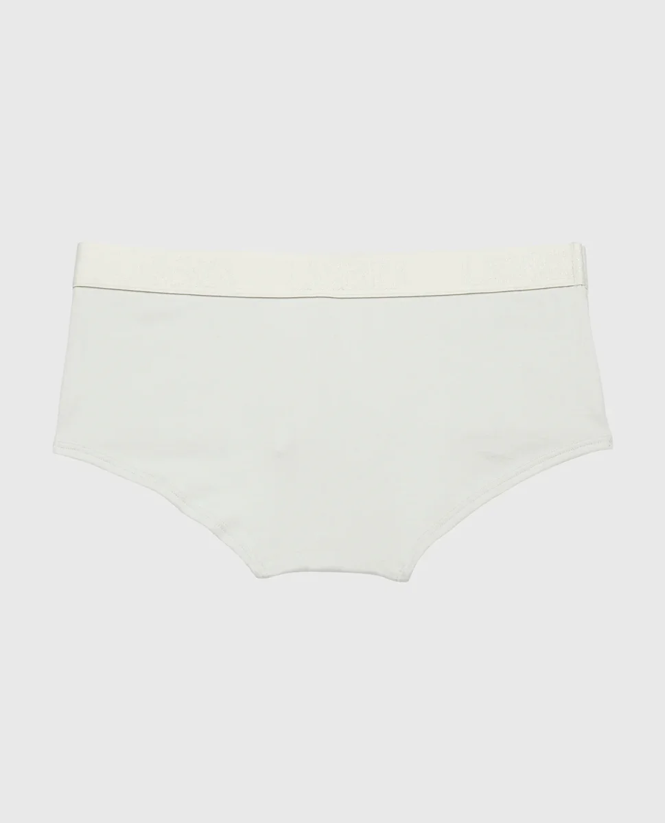 Smooth cotton mixed with trendy logo, this boyshort panty is a must-have! Super soft cotton with a logo waistband and full coverage. Imported cotton, elastane.