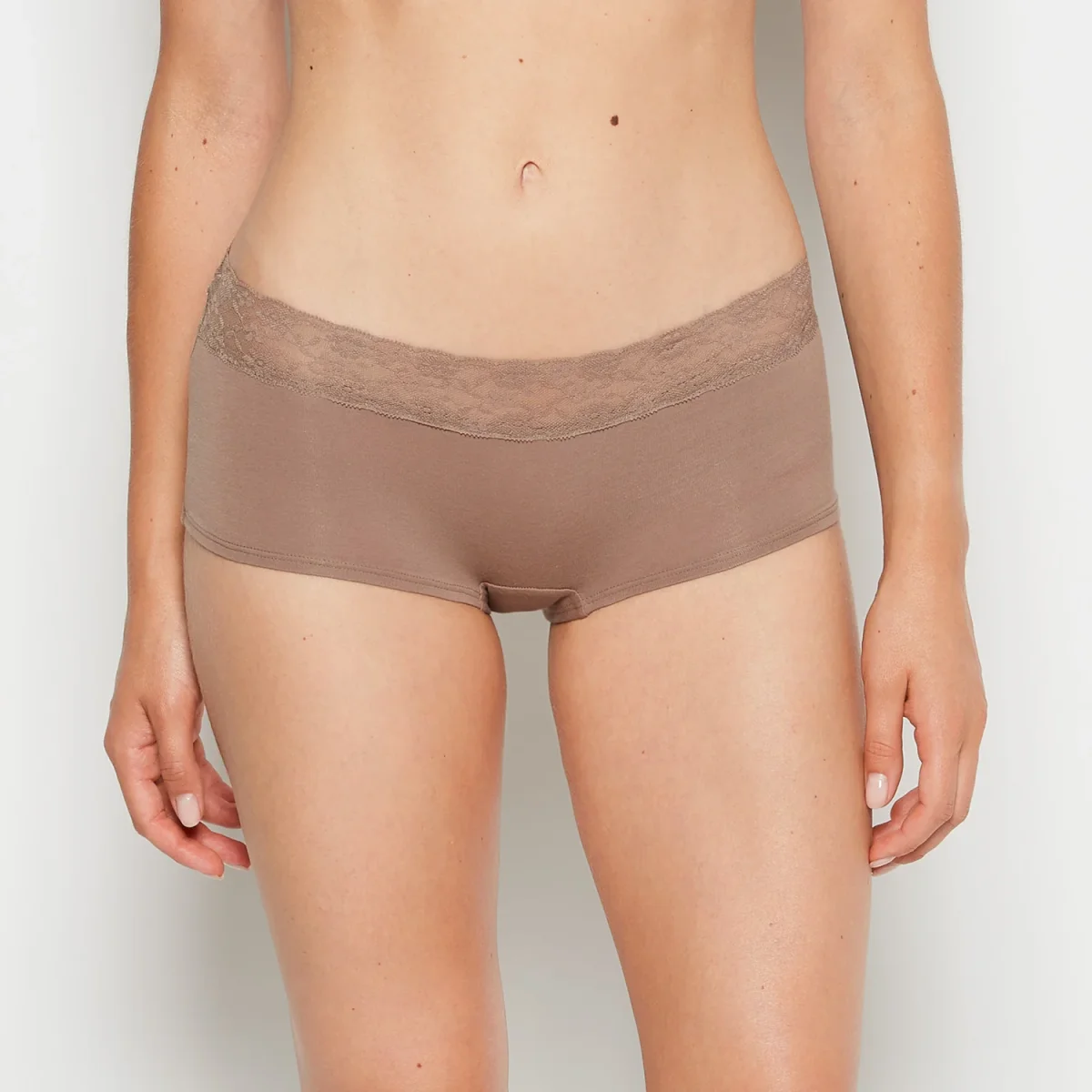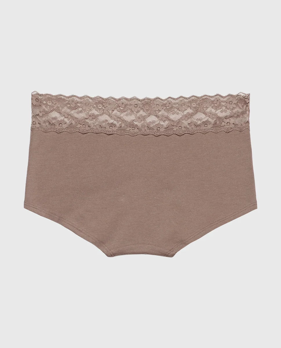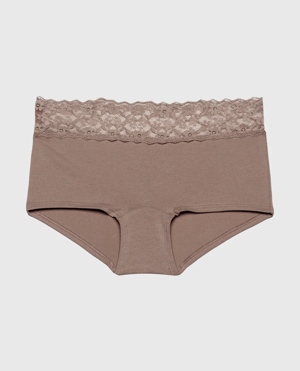 Full coverage meets ultimate comfort. This so-soft boyshort features a lace waistband and a low-rise fit. Made with imported cotton and elastane, fits true to size.