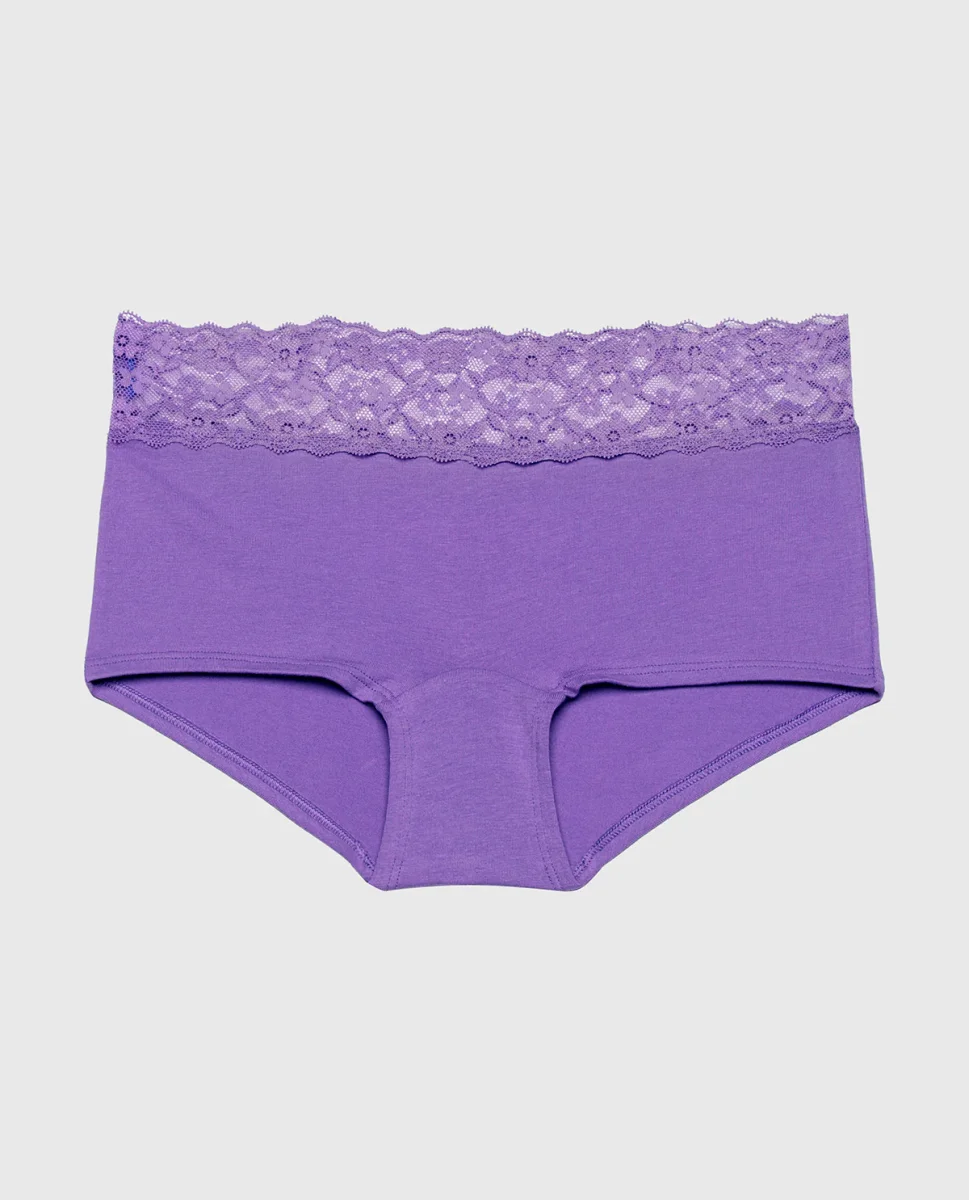 Full coverage meets ultimate comfort. This so-soft boyshort features a lace waistband and a low-rise fit. Made with imported cotton and elastane, fits true to size.