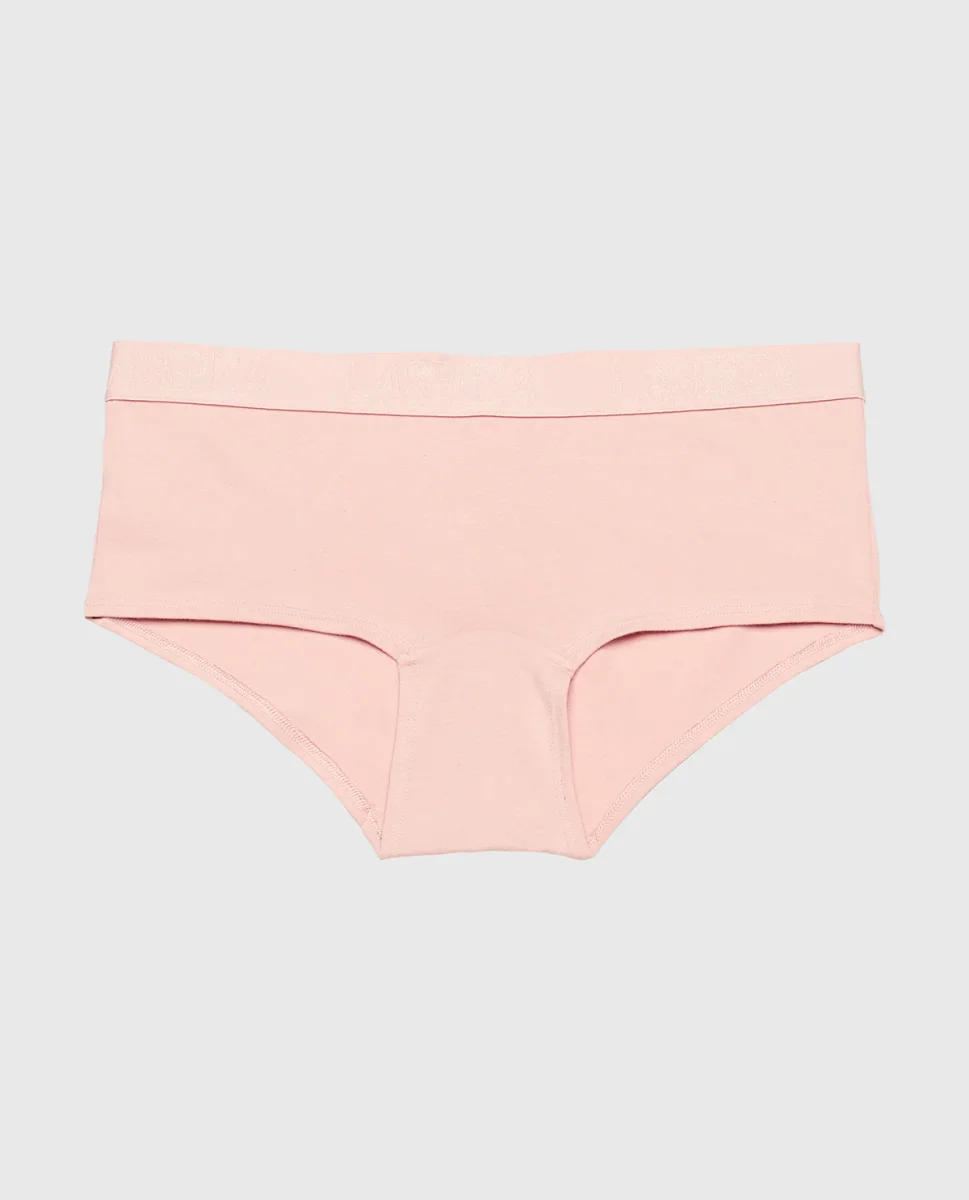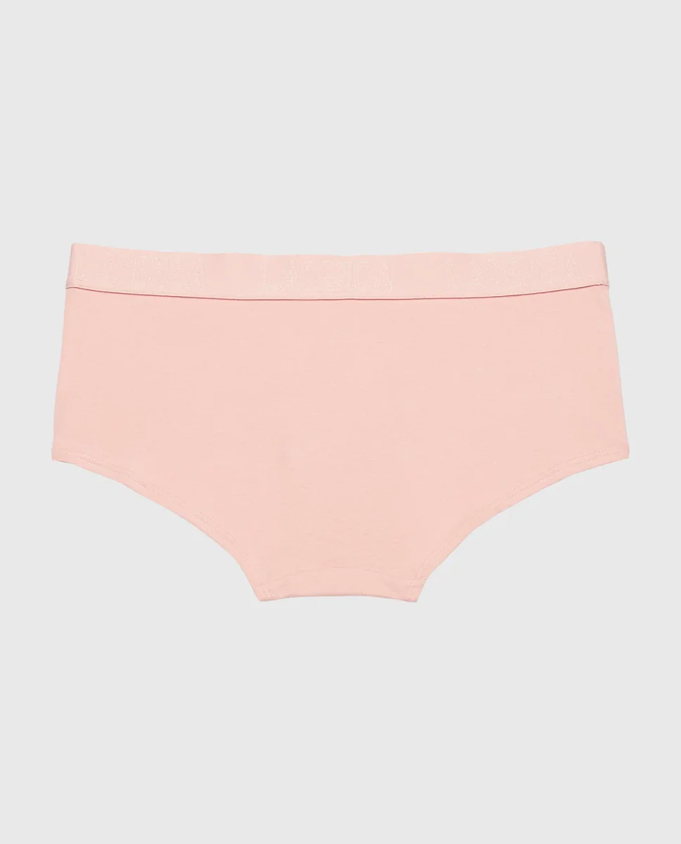 Smooth cotton mixed with trendy logo, this boyshort panty is a must-have! Super soft cotton with a logo waistband and full coverage. Imported cotton, elastane.