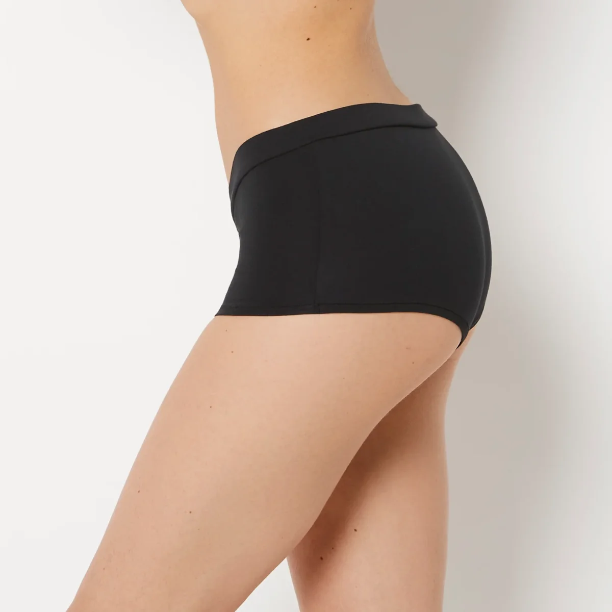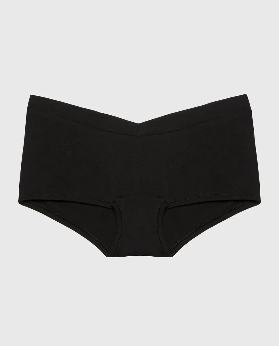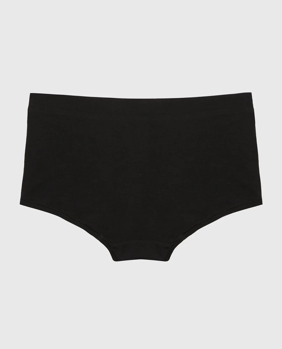 Master everyday comfort in this boyshort panty with a supportive wide waistband, rendered in timeless tuxedo black. The relaxed boyshort silhouette provides full coverage and unrestricted movement, while the wider waist creates a smooth, flattering line under any outfit. Perfect for all-day wear or layering, this panty prioritizes comfort without compromising on style.