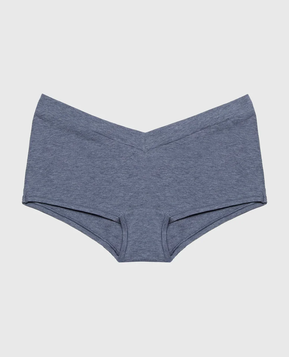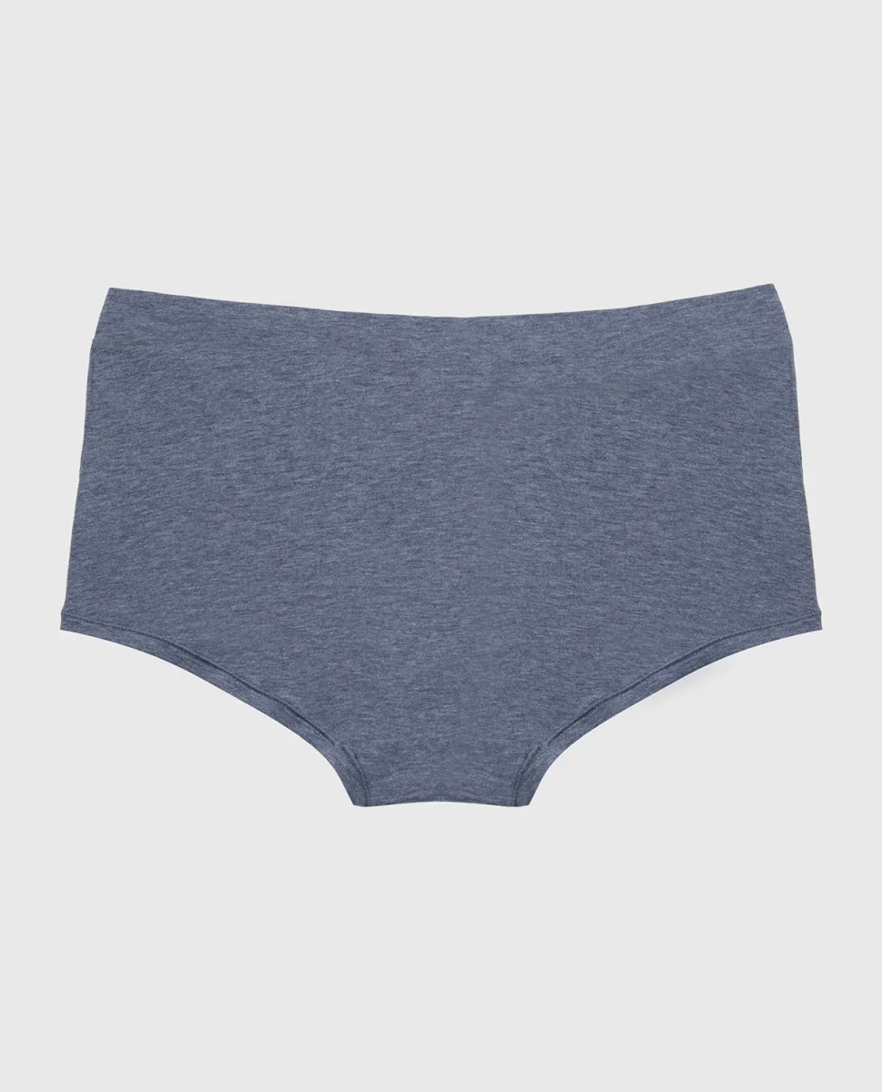 Settle into comfort with this boyshort panty featuring a supportive wide waistband in rich vintage indigo heather. The relaxed boyshort silhouette provides full coverage and unrestricted movement, while the wider waist creates a smooth, flattering line under any outfit. Perfect for everyday wear or layering, this panty prioritizes comfort without compromising on style.