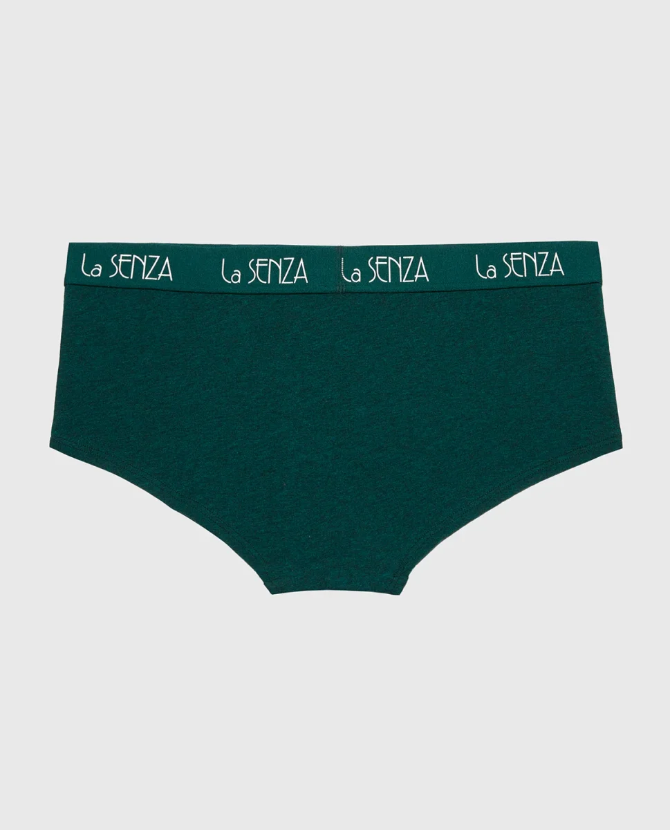 Experience a refined fit with the Boyshort Panty with Art Deco Logo in Emerald Green Heather. Part of the essentials cotton collection, crafted in premium cotton. Crafted for all-day ease and modern appeal.