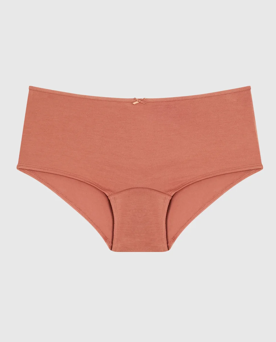 Ultrasoft and ultra-sweet, this Rosy Blush Boyshort Panty with Bow is the perfect addition to any rotation. This panty is made with an irresistible modal body and features a bow detail for that instant feminine feeling. Fits true to size.