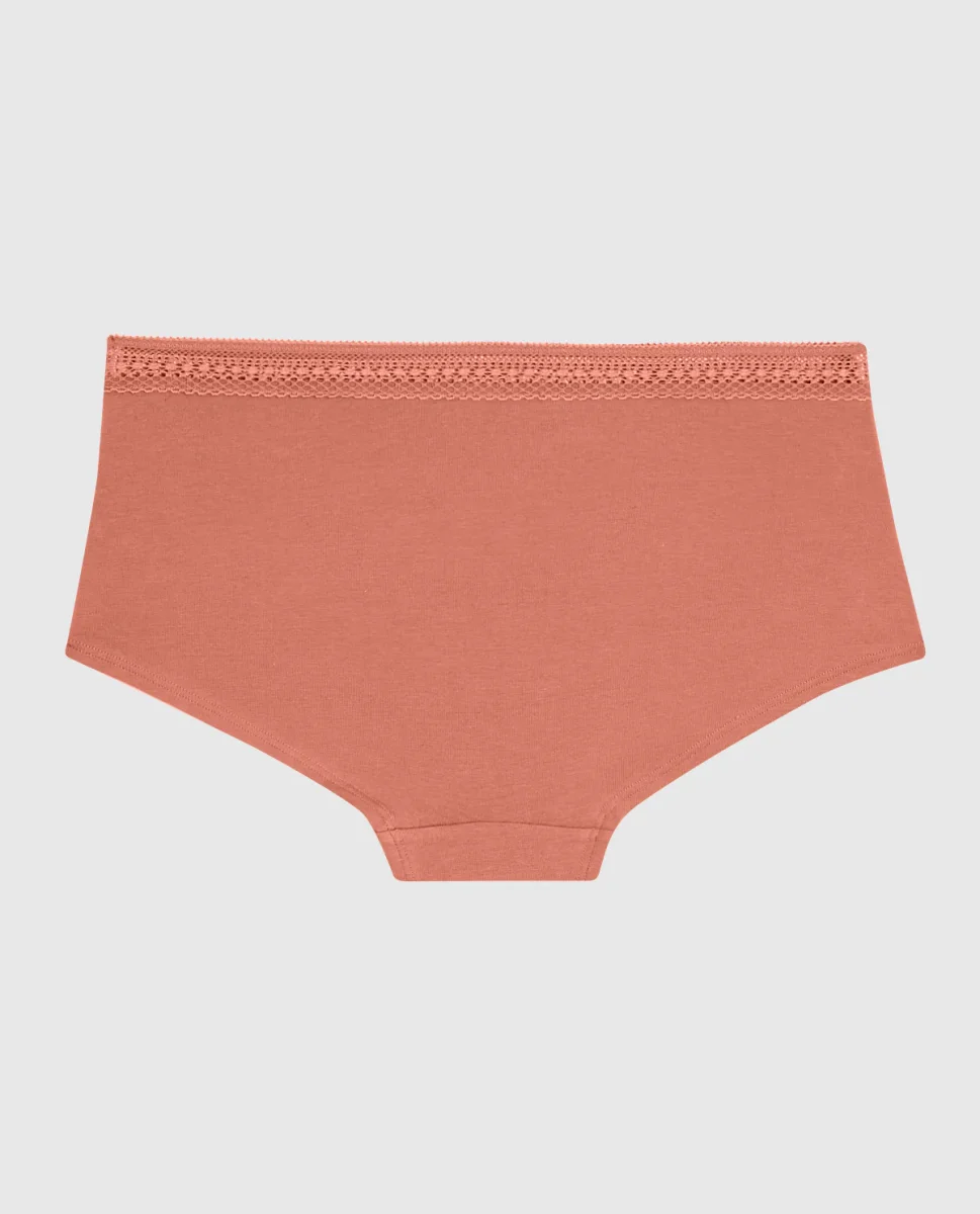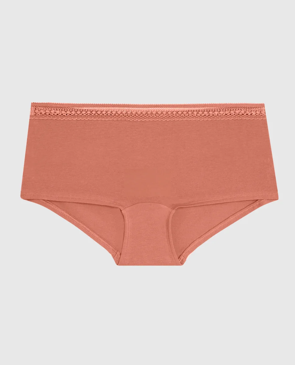 Soft, breathable, and designed to move with you—Our Rosy Blush Boyshort Panty with Elemental Trim adds a touch of refined elegance to an everyday classic. Fits true to size.