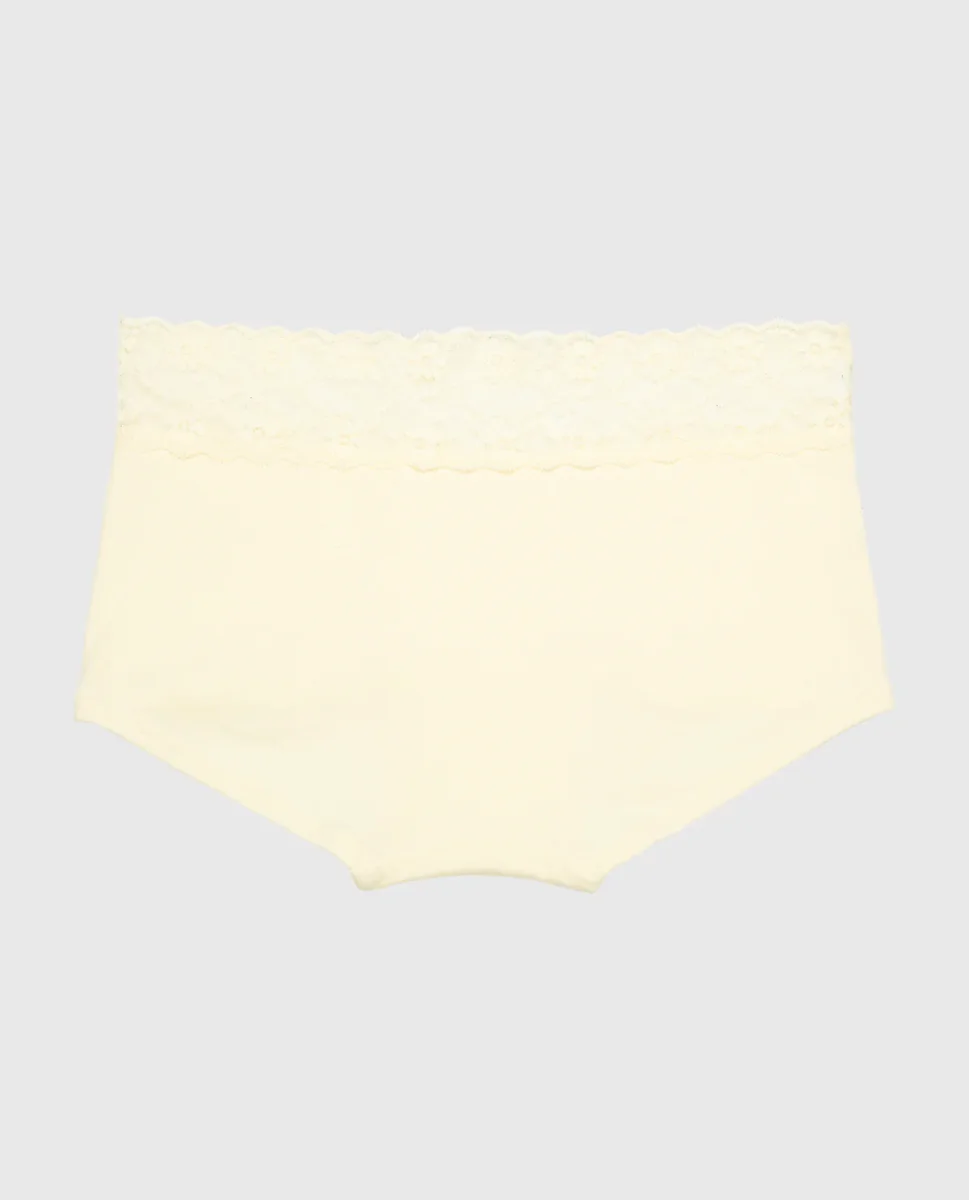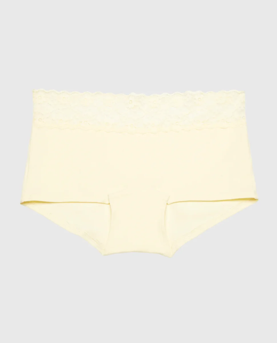 Boyshort Panty With Lace Trim in Lemon Icing