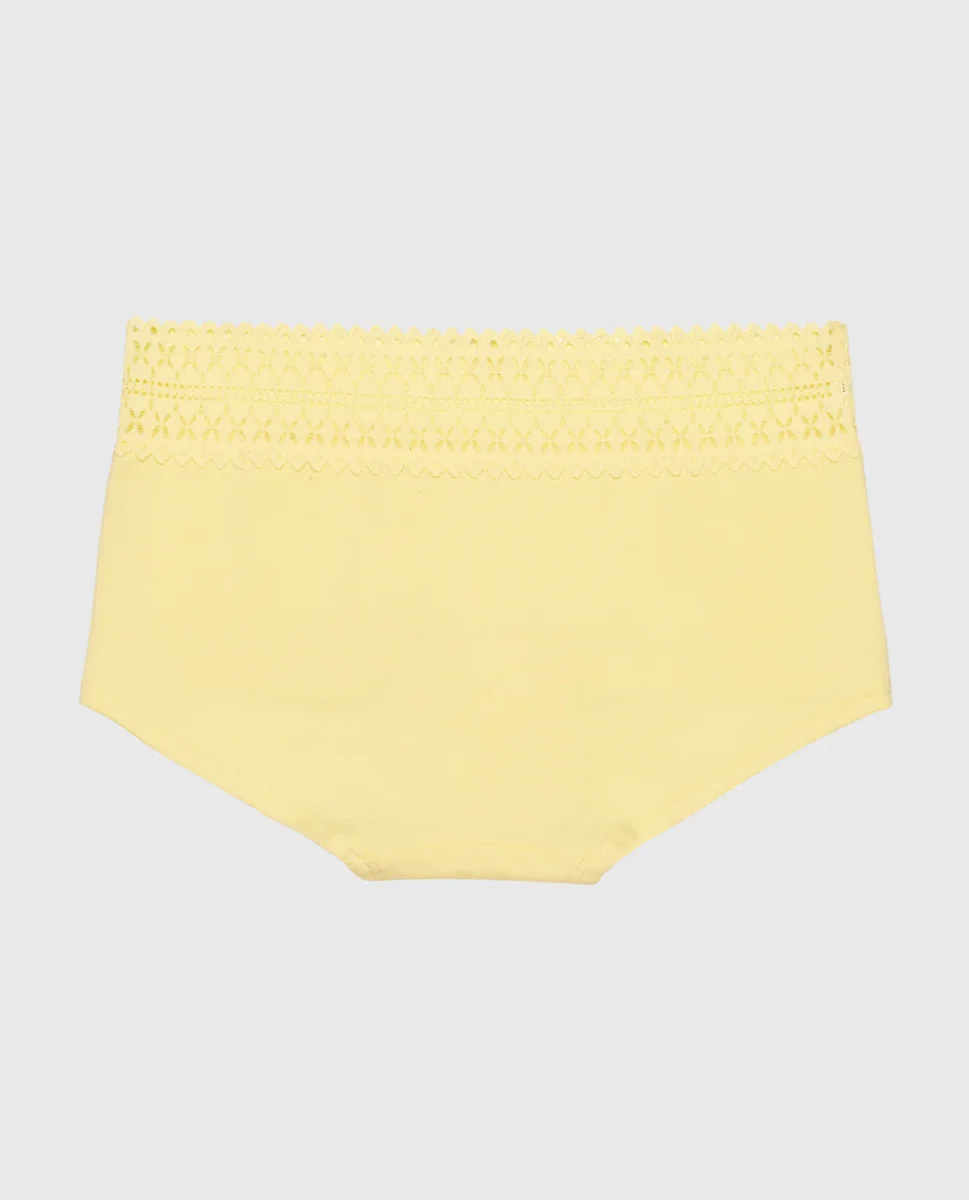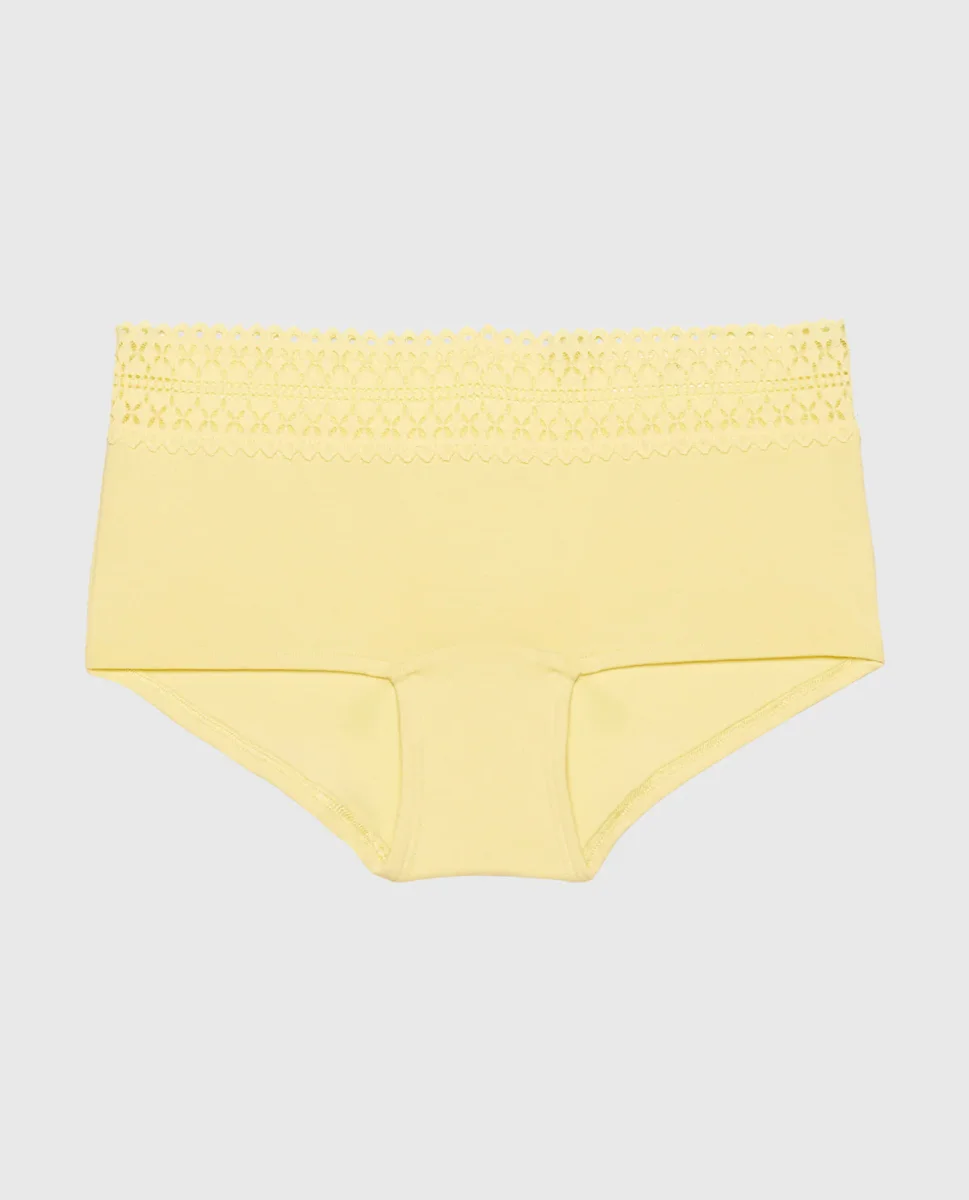 Boyshort Panty with Lace Trim in Mellow Yellow