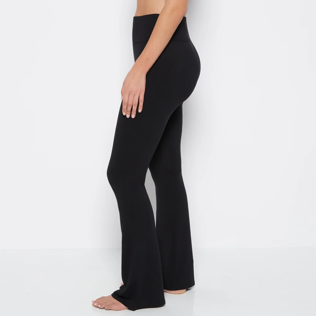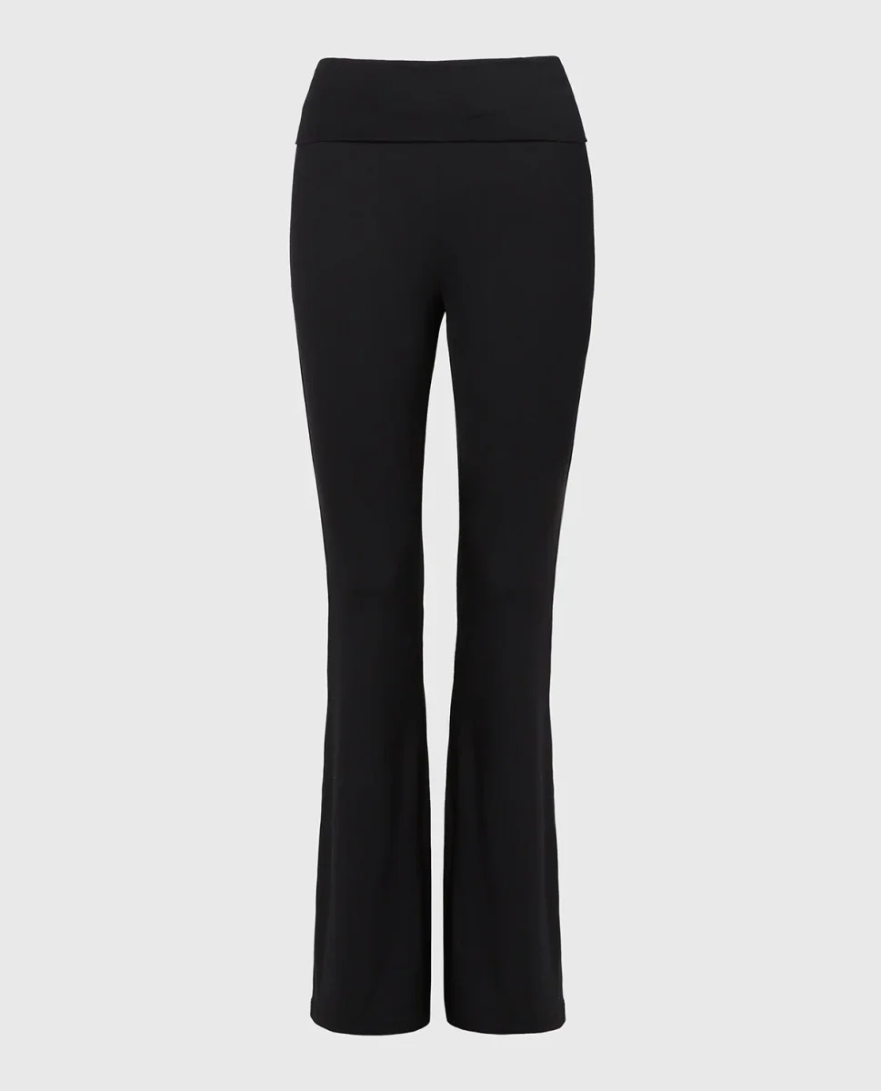 Brushed Jersey Fold over flare leg pant in Tuxedo Black