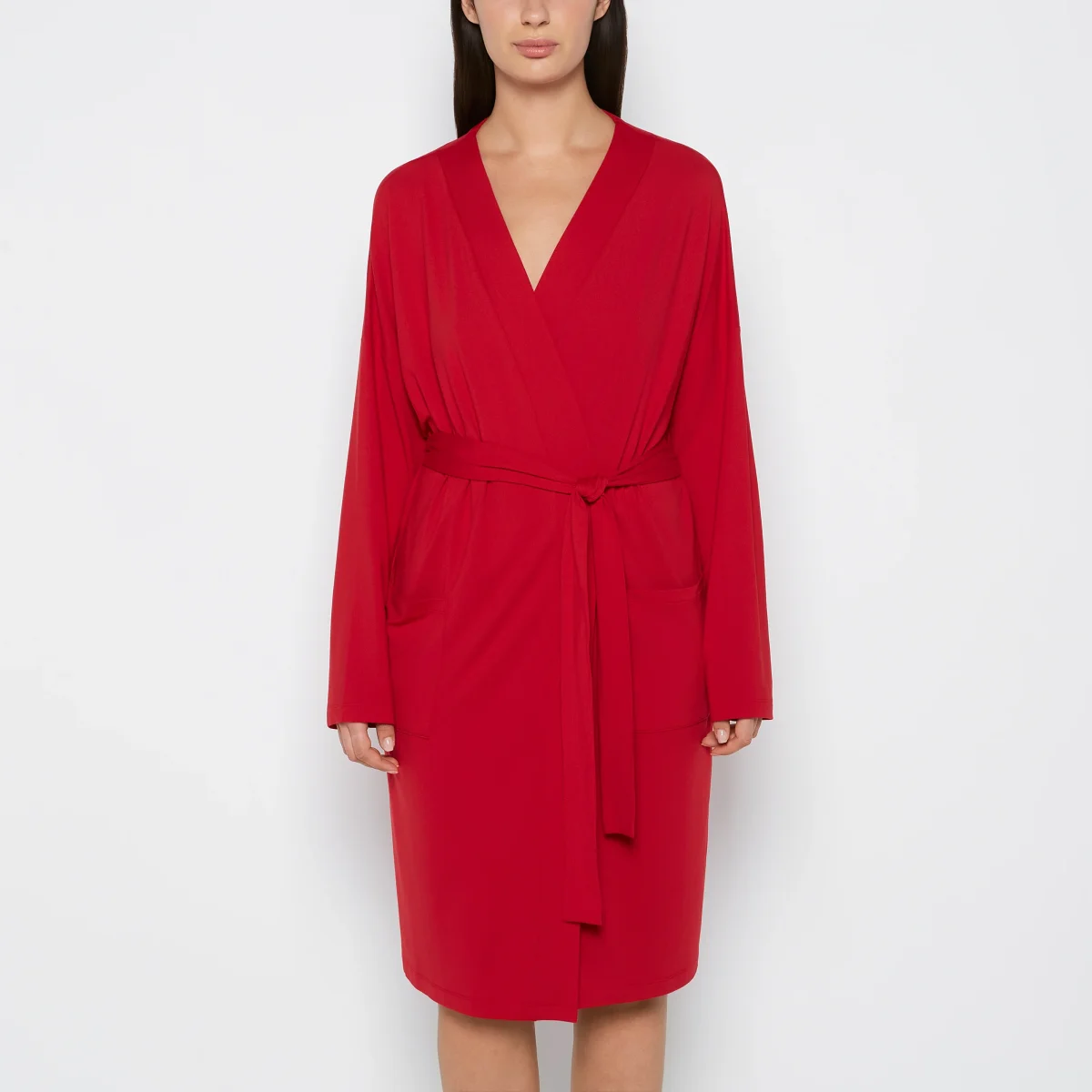 The Brushed Jersey Robe in Crimson brings understated style and comfort together. Part of the sleepwear collection, crafted in premium polyester. A timeless addition to your lingerie lineup.