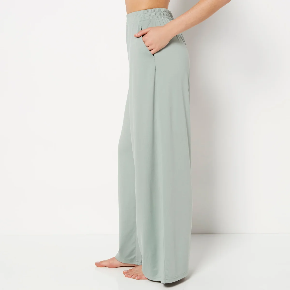 Settle into serene comfort with these jersey sleep pants in a cool, calming iceberg green. The soft fabric drapes beautifully for an easy, relaxed fit that moves with you through the night. Perfect on their own or paired with any of our coordinating sleep tops, these pants deliver understated elegance and all-day wearability.