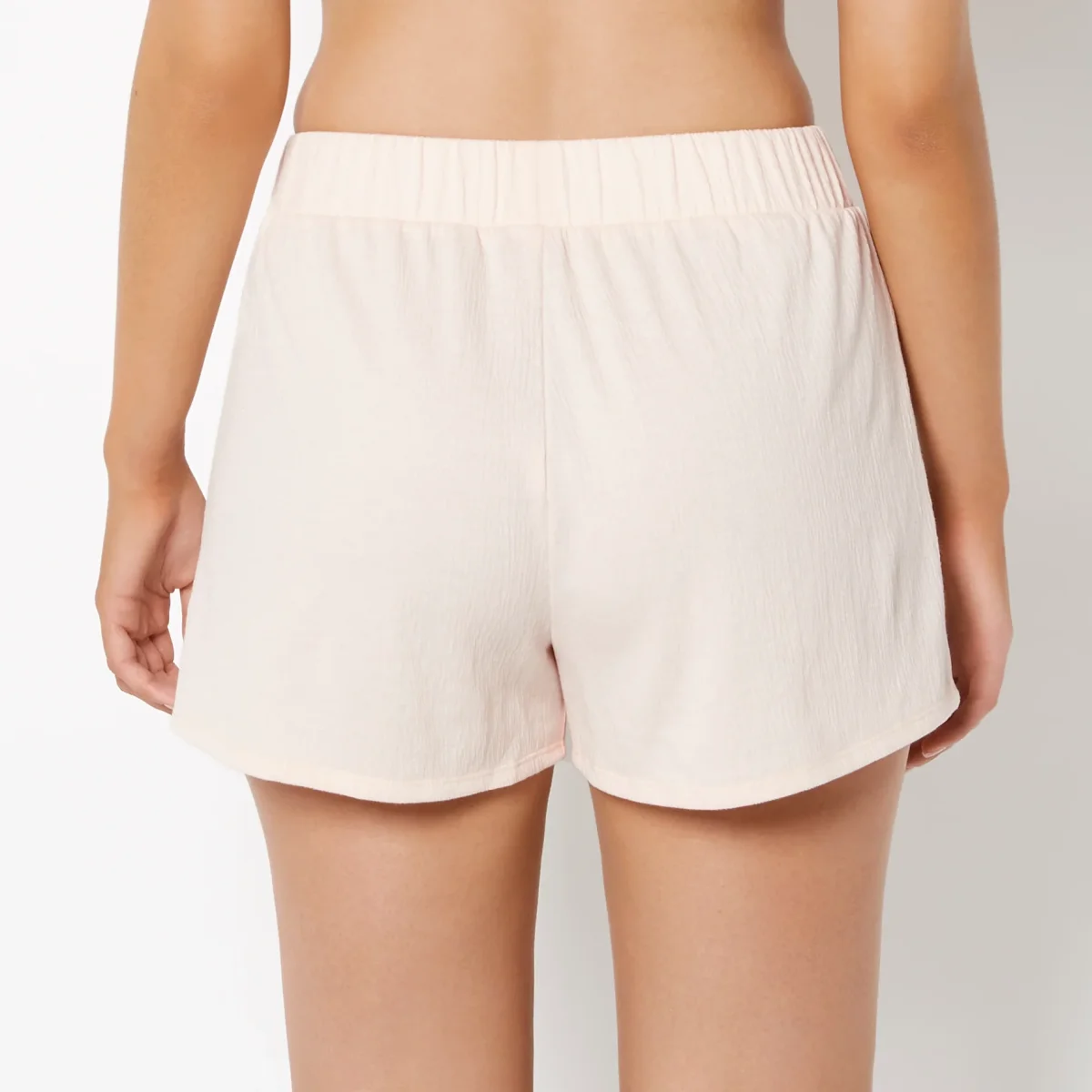 Indulge in soft luxury with these textured crepe knit boxer shorts in delicate pearl blush. The tactile knit fabric feels wonderful against your skin while maintaining breathability for all-night comfort. The gentle blush tone adds a touch of femininity to your sleepwear collection, making these shorts equally at home in the bedroom or paired with a matching sleep top for a coordinated set. Comfort that feels as beautiful as it looks.
