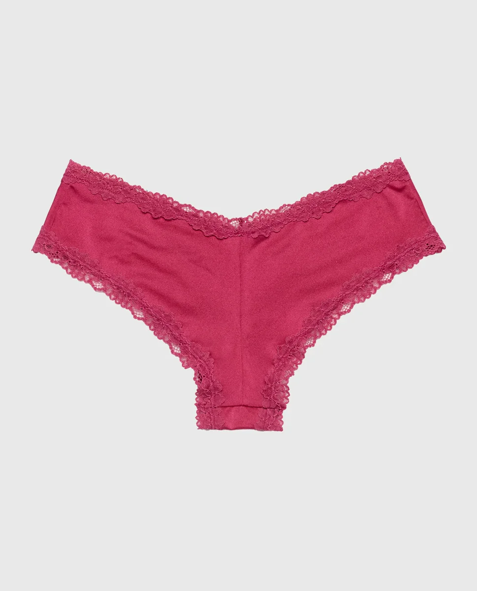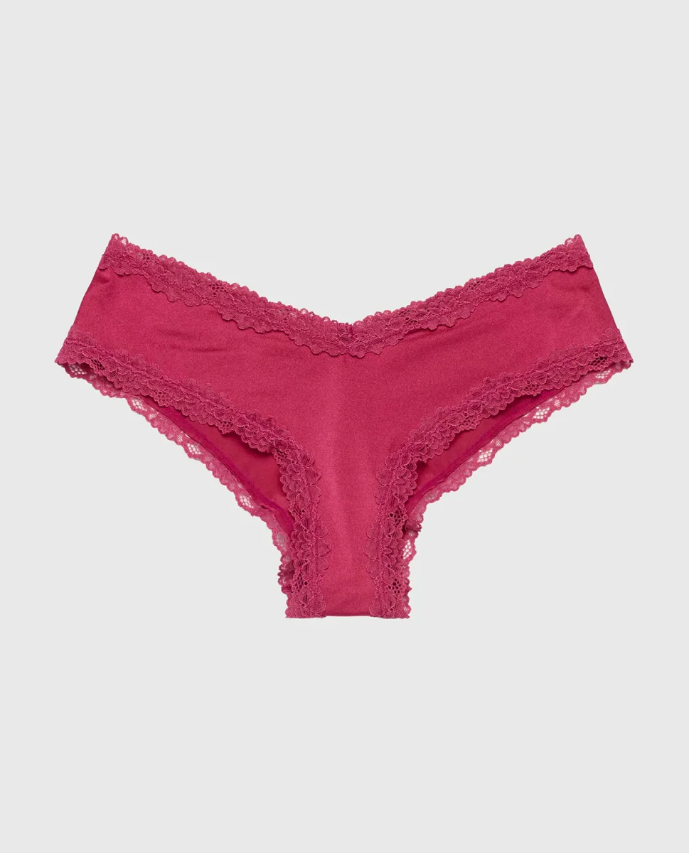 This Electric Rouge Cheeky Panty with Lace Trim is perfect for any season. It is detailed with a lace trim and offers a low rise fit with minimal coverage. Made with imported polyamide and elastane, fits true to size.