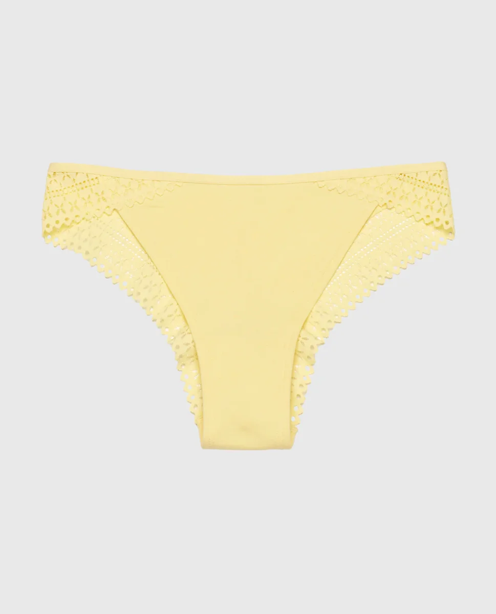 Comfortable, soft, and perfect for everyday. Our Mellow Yellow Cheeky Panty with Lace Trim is sure to be your new go-to. It is made with ultrasoft materials and delicate lace for an instant feminine feel. Fits true to size.