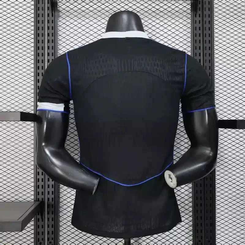Le maillot third de Chelsea se distingue par sa couleur noire profonde, rehaussée de touches de bleu, qui apporte une touche de modernité et de fraîcheur. Fabriqué en 100% polyester respirant, il assure une excellente gestion de l’humidité pour garder les joueurs au sec pendant les matchs cruciaux.