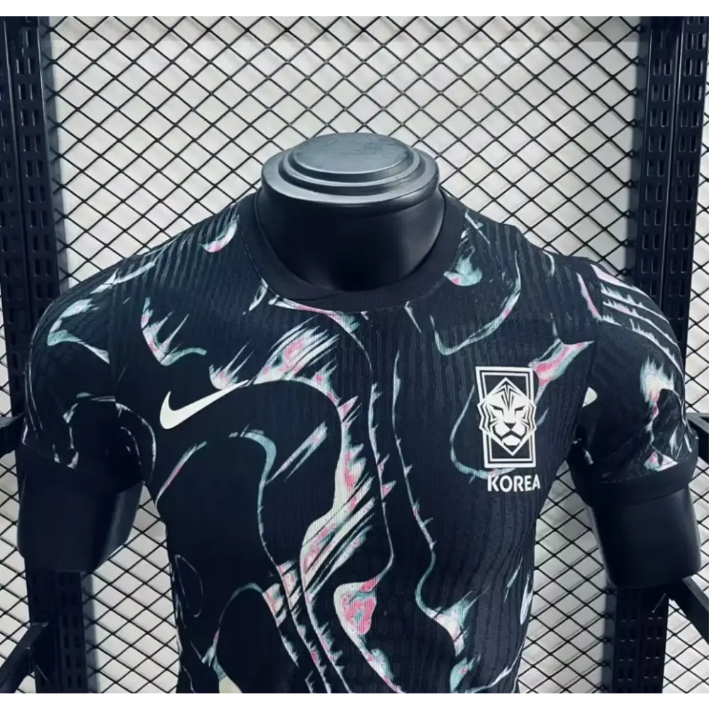 Ce maillot arbore une teinte noire intégrale, mettant en avant un style minimaliste et raffiné. Le logo de la Corée du Sud est brodé avec précision pour un rendu authentique.