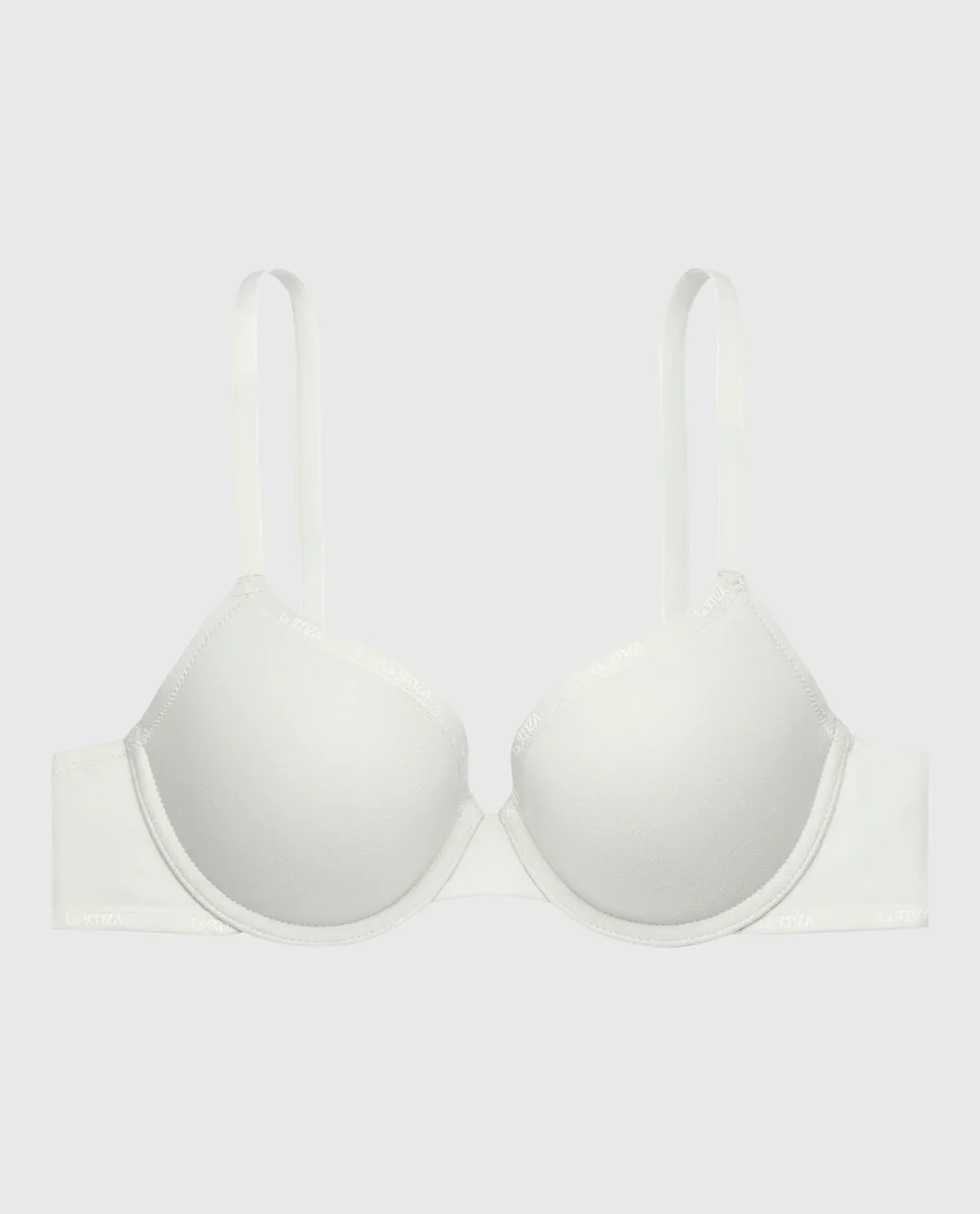Your new bra for everyday! With a perfect mix of comfort and style, this lightly lined demi bra is designed with our mini logo band along the cups and gives you a natural, all-you shape.