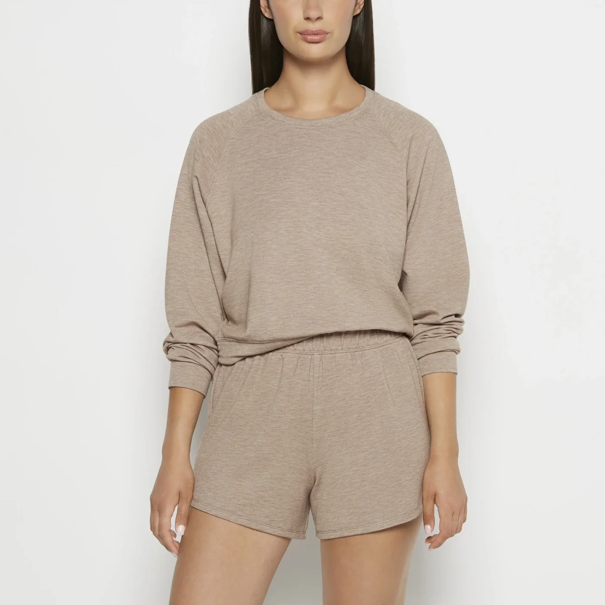 French Terry Crew Neck Sleep Top is designed for cozy nights and stylish lounging. Leafless Tree Heather brings warmth and charm to your sleepwear. Soft, dreamy, and irresistibly comfy.