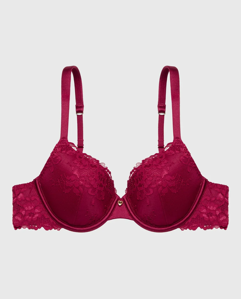 The Full Coverage Lightly Lined Bra with Romantic Lace in Plum Rose offers everyday support with romantic elegance. This So Free collection staple features a comfortable full coverage cut adorned with delicate romantic lace, all in a sophisticated Red shade that brings refinement and allure to your intimate collection.