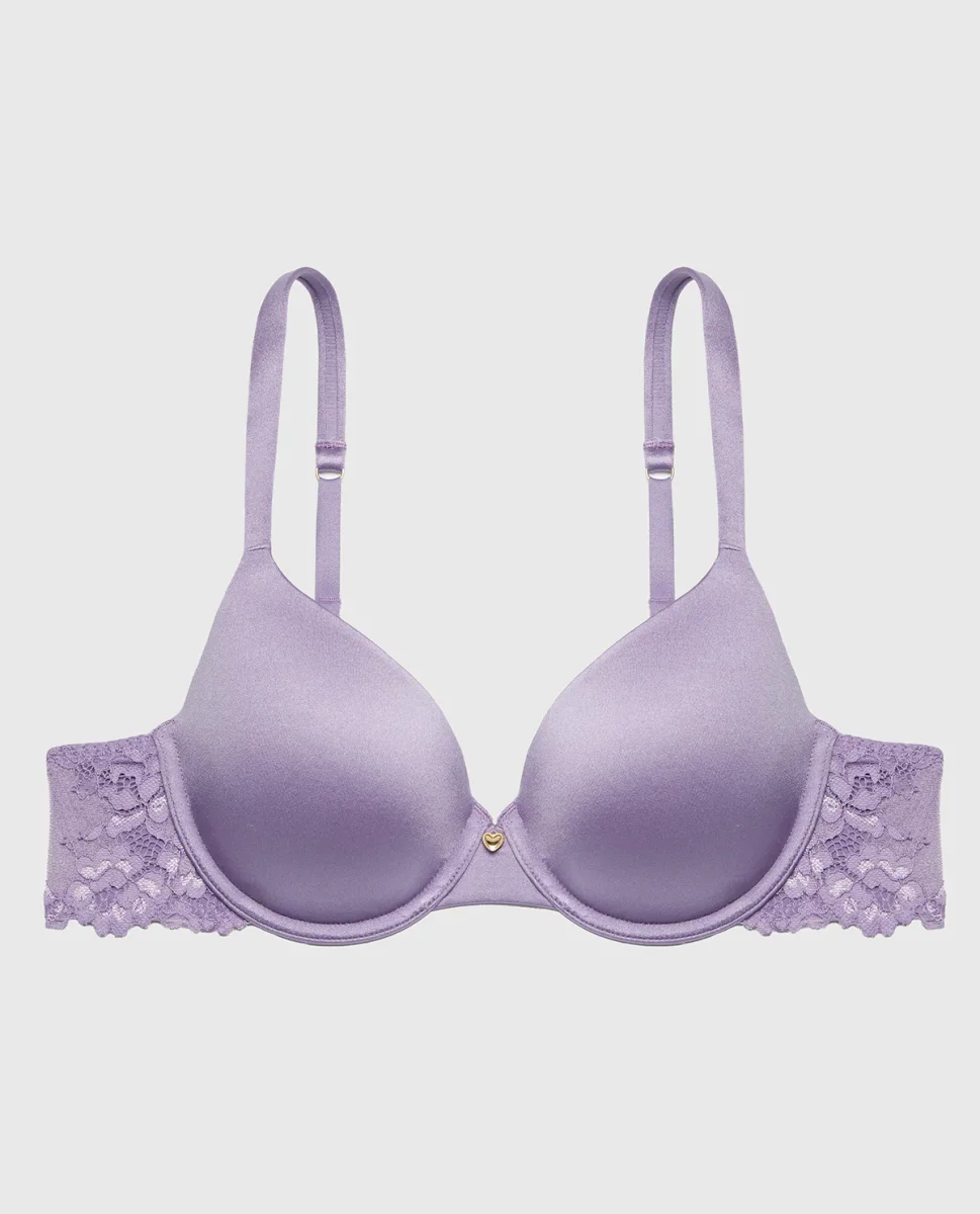 The Full Coverage Lightly Lined Bra with Romantic Lace Wing in Purple Haze delivers supportive style with romantic details. This collection favorite features a flattering full coverage design adorned with delicate romantic lace wing accents, all in a rich Purple Haze shade that brings sophistication to your everyday wardrobe.