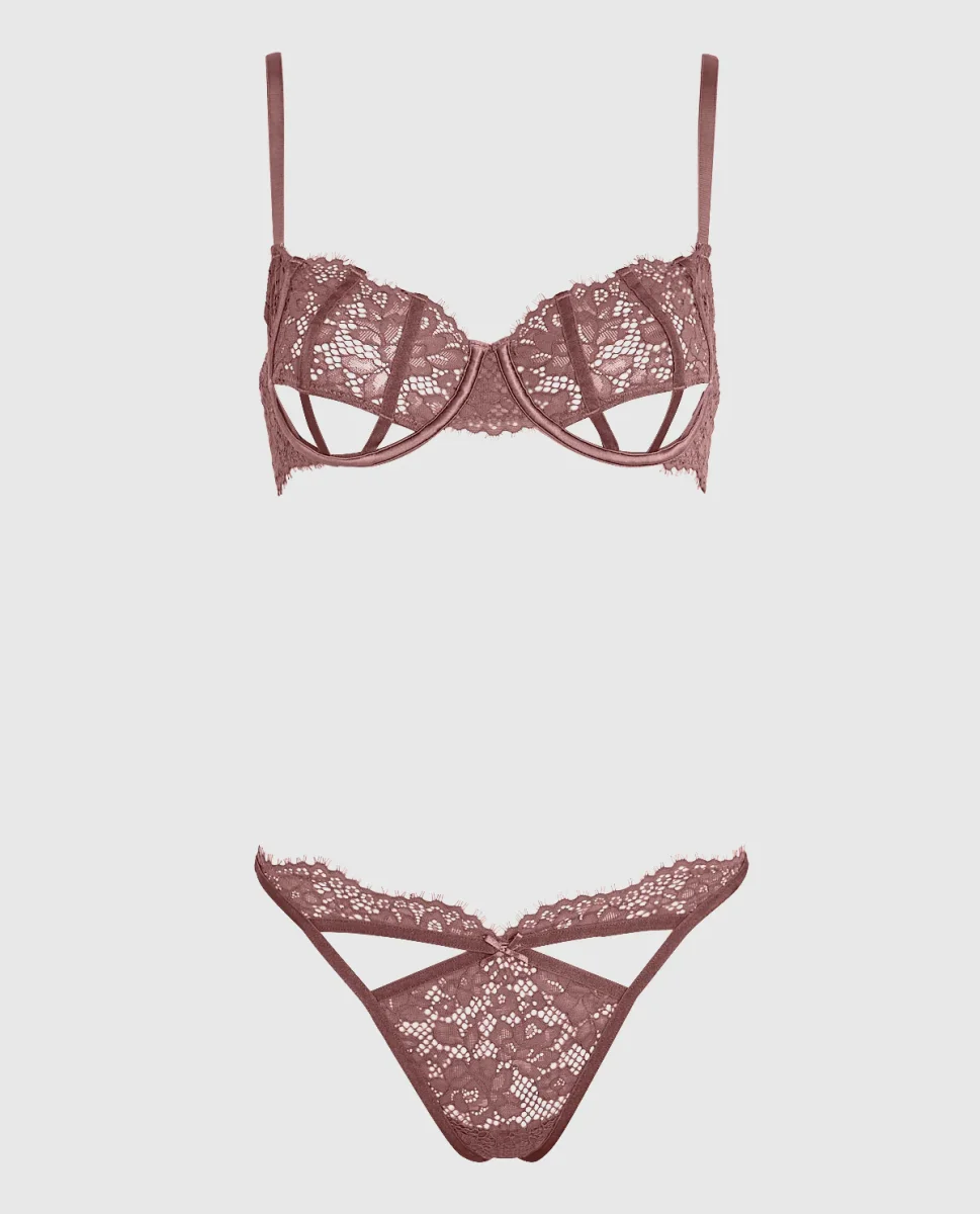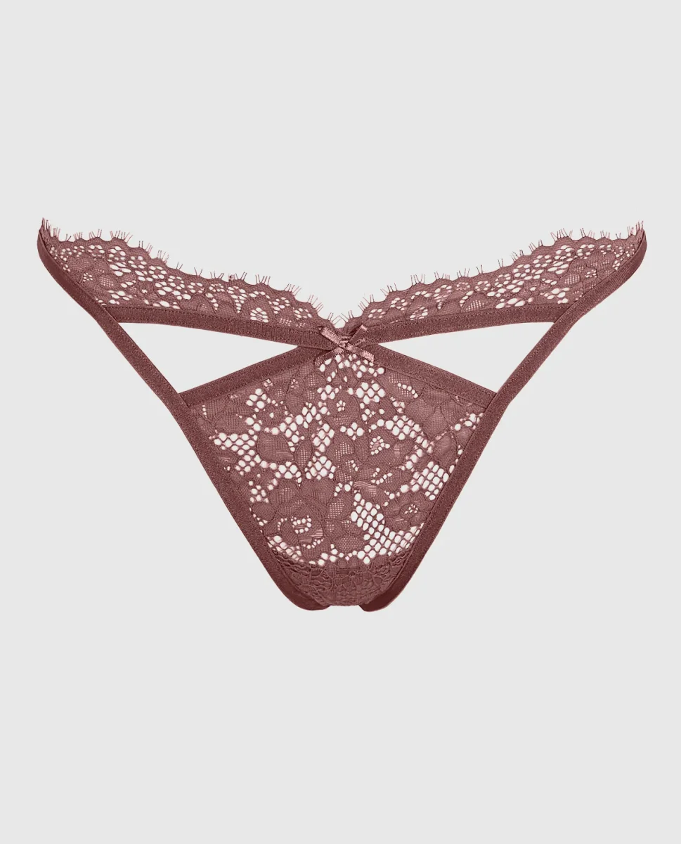 Seductive and sophisticated, the G-String Panty with Cut-Outs in Dusty Cedar is designed to captivate. With its delicate lace and daring accents, this piece redefines elegance with a bold, modern edge. Pair it with the matching bra to create a flawless, head-turning set that’s perfect for any occasion.