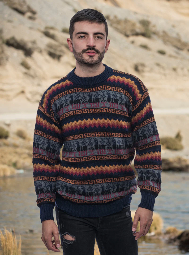 Matière : Laine d’alpaga Couleur : Multicolore Remarque : Étant donné que ce produit est fait à la main, il peut présenter de légères variations par rapport aux photos. Description : Pull col rond avec rayures horizontales et motif géométrique coloré Doux au toucher : La laine d’alpaga est extrêmement douce. Elle est plus douce […]