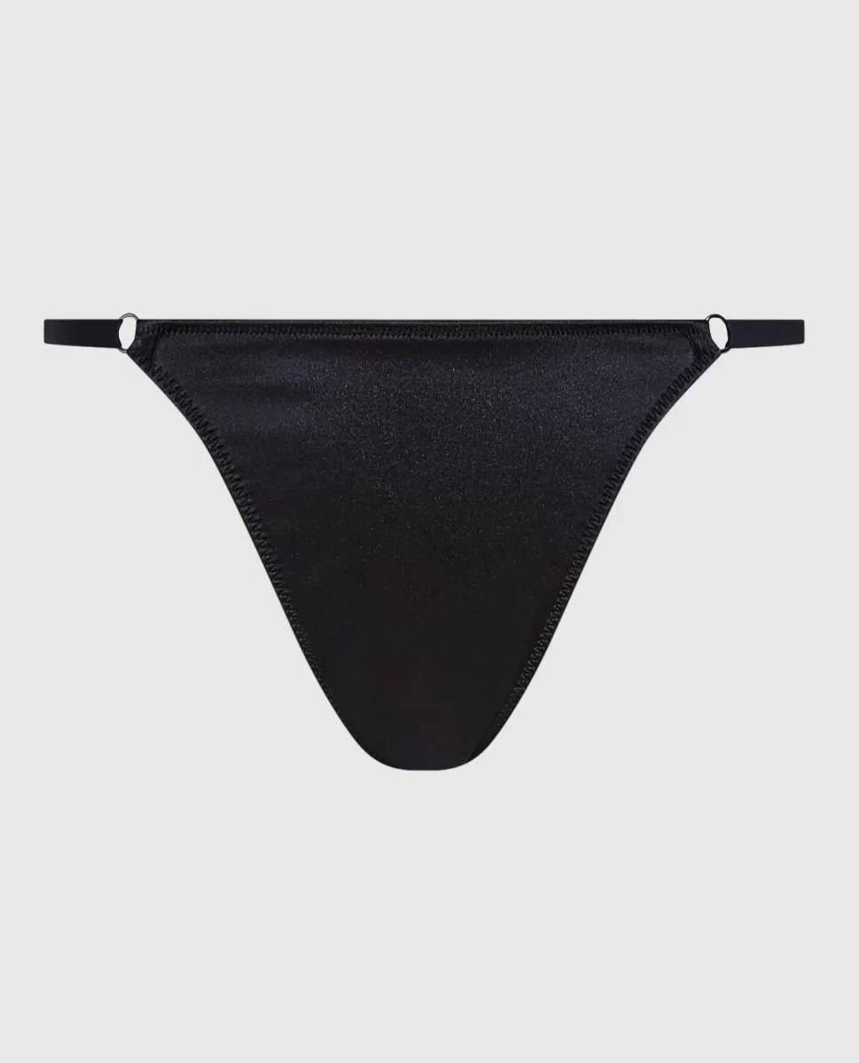 High Leg Thong Satin Panty in Smoulder Black