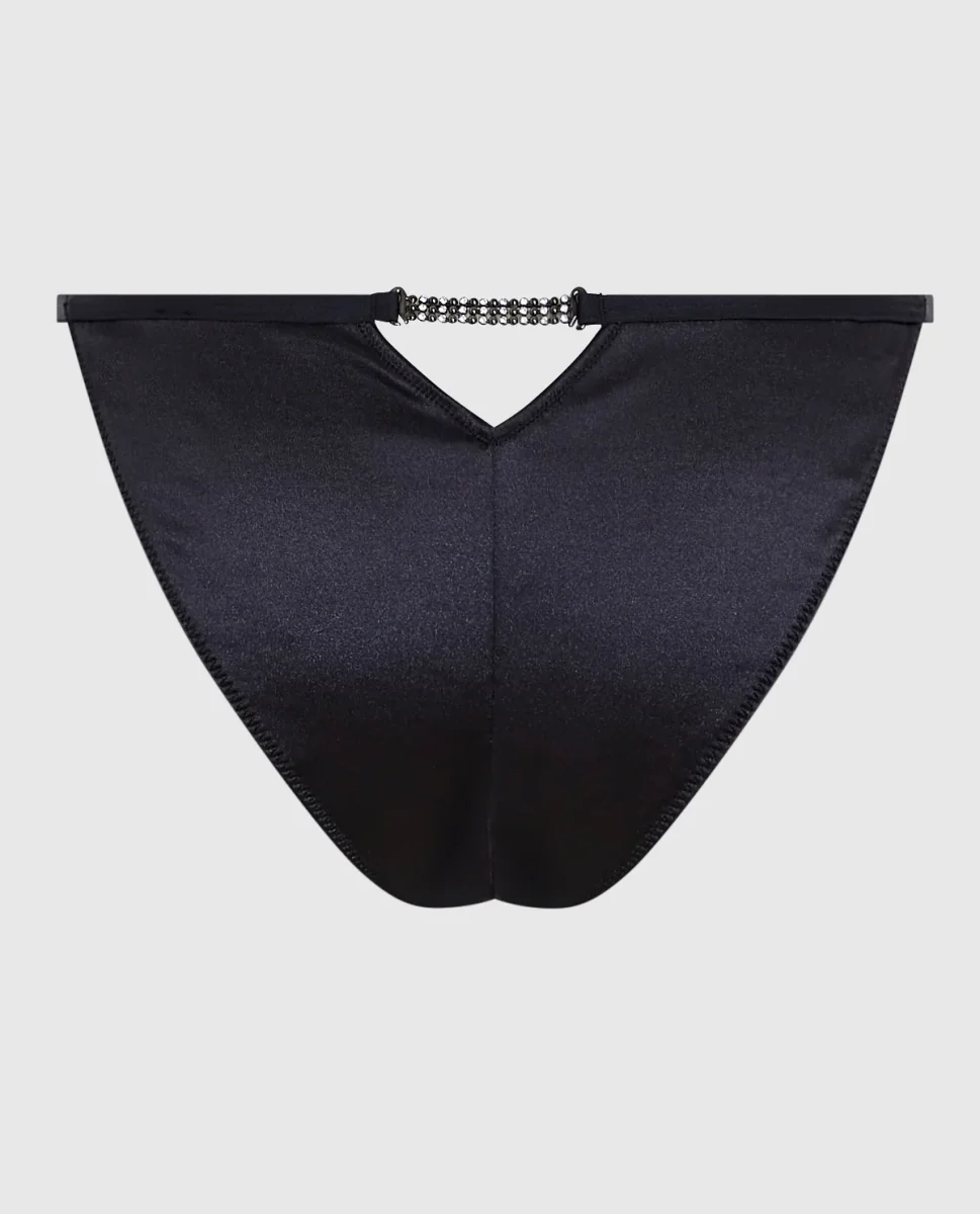 Be bold in this all-over satin with rhinestones that are sure to shine bright. Complete the look with the matching bra for a perfect night in.