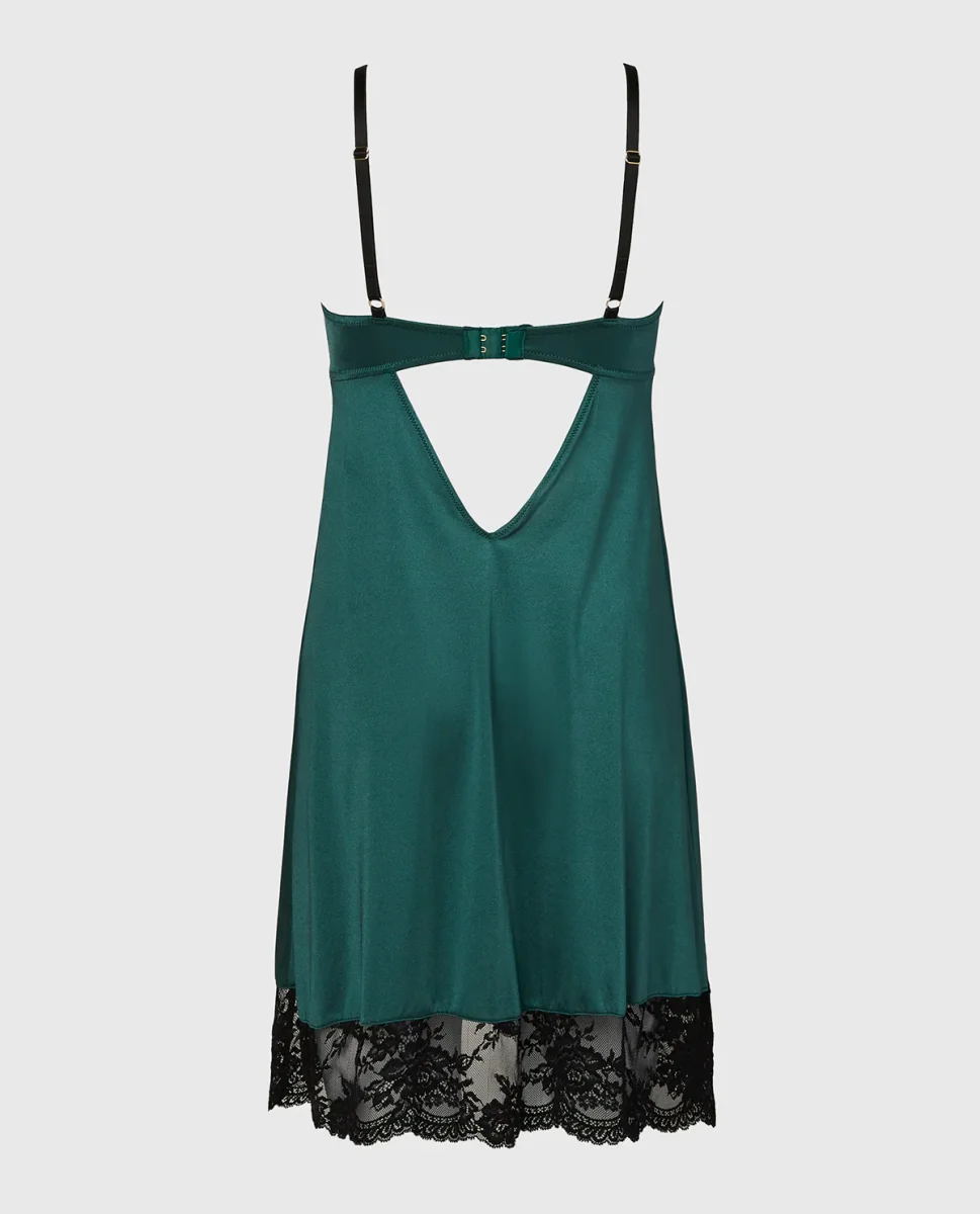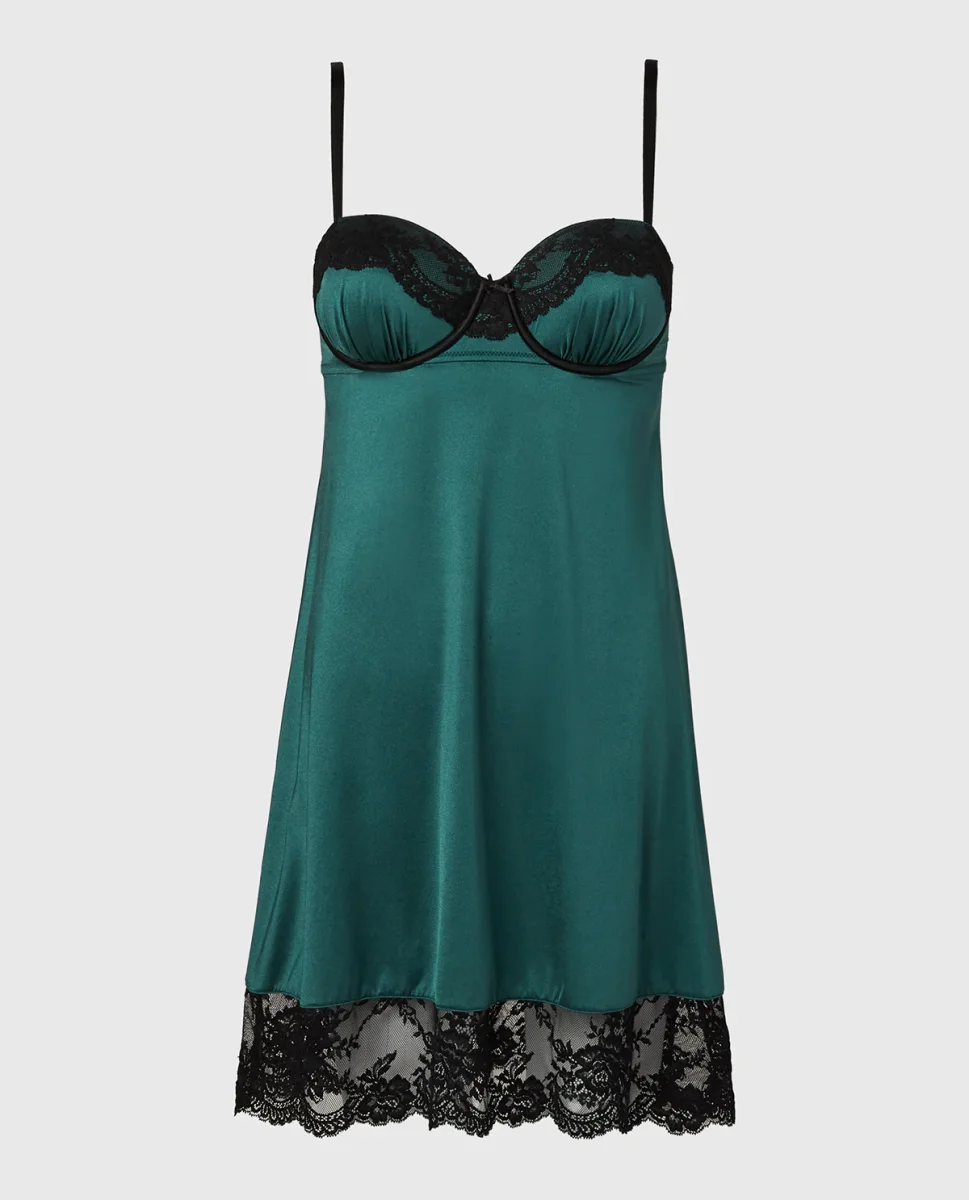 The High Shine Microfiber Slip With Opulent Lace in Emerald Green combines thoughtful design and everyday function. Part of the lingerie collection, crafted in premium microfiber, featuring a lightly lined lining for a smooth feel, with a underwire design for gentle support, and a back-close closure.
