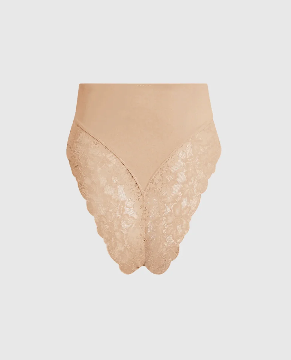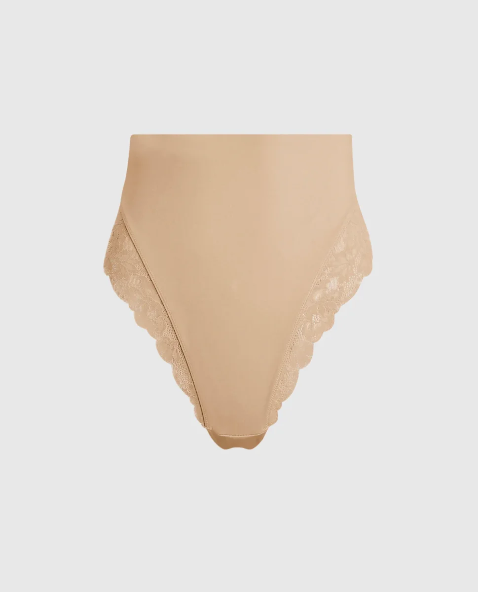 Achieve a smooth look with our new high waist smoothing cheeky panty. Detailed with lace along the back achieve the perfect balance of comfort and sexy. Smooth microfiber and lace Smoothing effect Comfy support that won’t squeeze or dig High waist Minimal bum coverage Imported polyamide, elastane