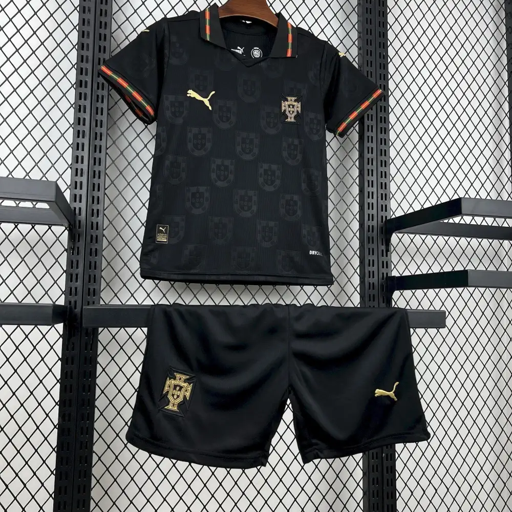Le Kit Enfant Portugal Extérieur Coupe du monde 2026 reflète l’élégance et l’esprit compétitif du football portugais. Conçu pour les jeunes fans, ce kit propose une esthétique épurée et une qualité optimale pour encourager leur équipe avec style.