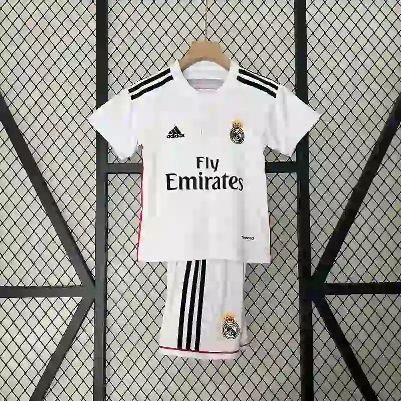 Offrez à votre enfant le kit domicile rétro Real Madrid 2014/2015, une tenue fidèle au style iconique du club.